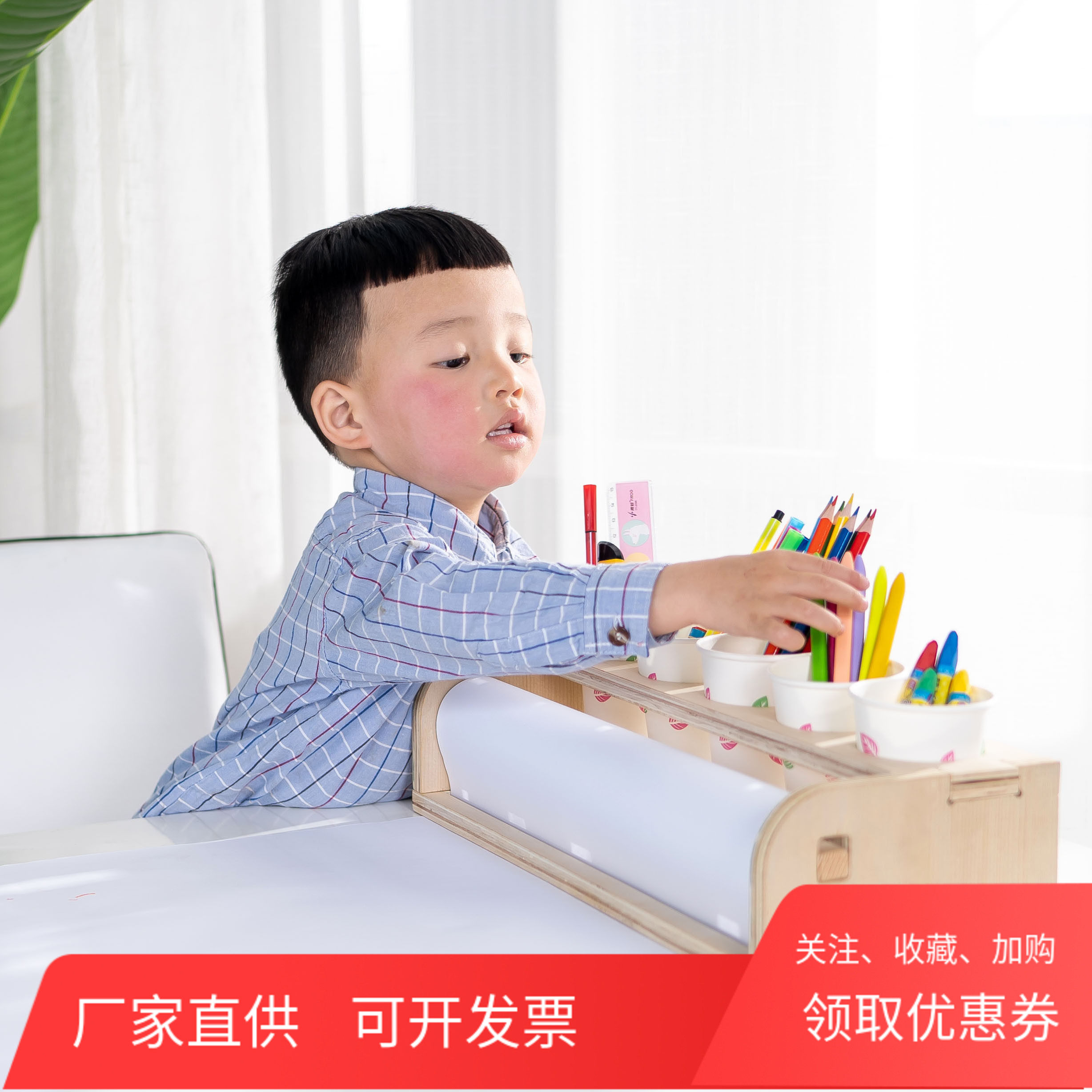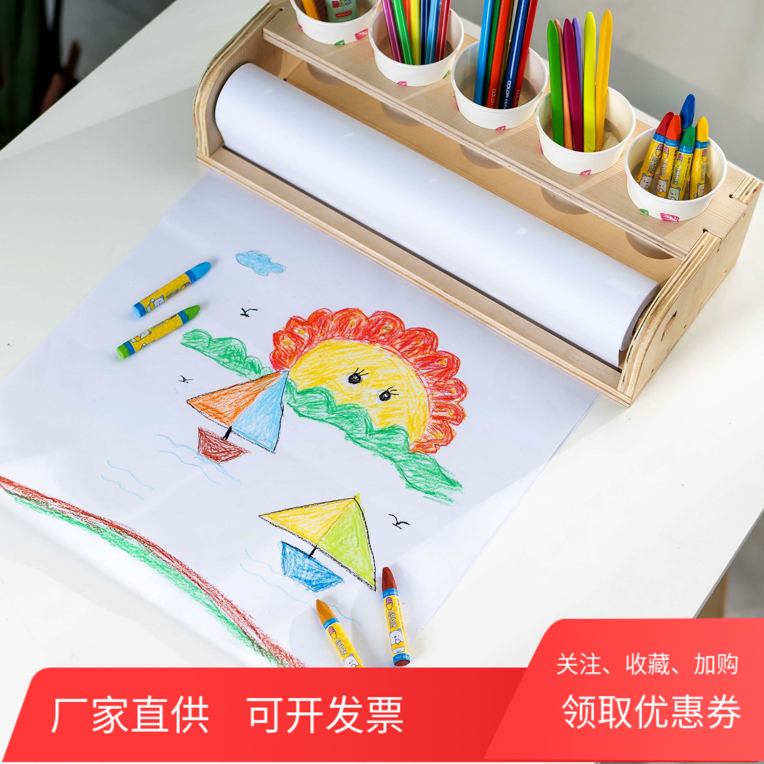 📚 创意儿童桌面台式画架宝宝涂鸦简易实木画板绘画轴卷纸架美术包邮