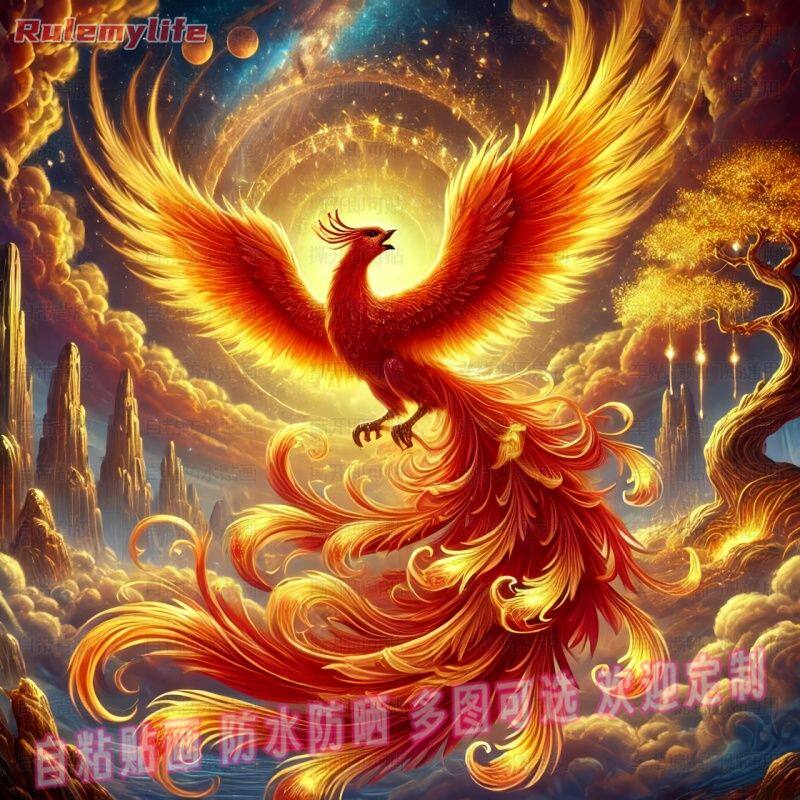 📚 神鸟朱雀火凤凰贴画平安贴纸家居墙上遮丑壁画吉祥贴饰自贴装饰画