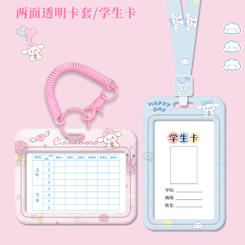 📚 中小学生科目课程表卡套硬卡片多功能可伸缩弹簧绳书包挂件防丢卡套学生校园门禁卡公交地铁卡包校牌证件套