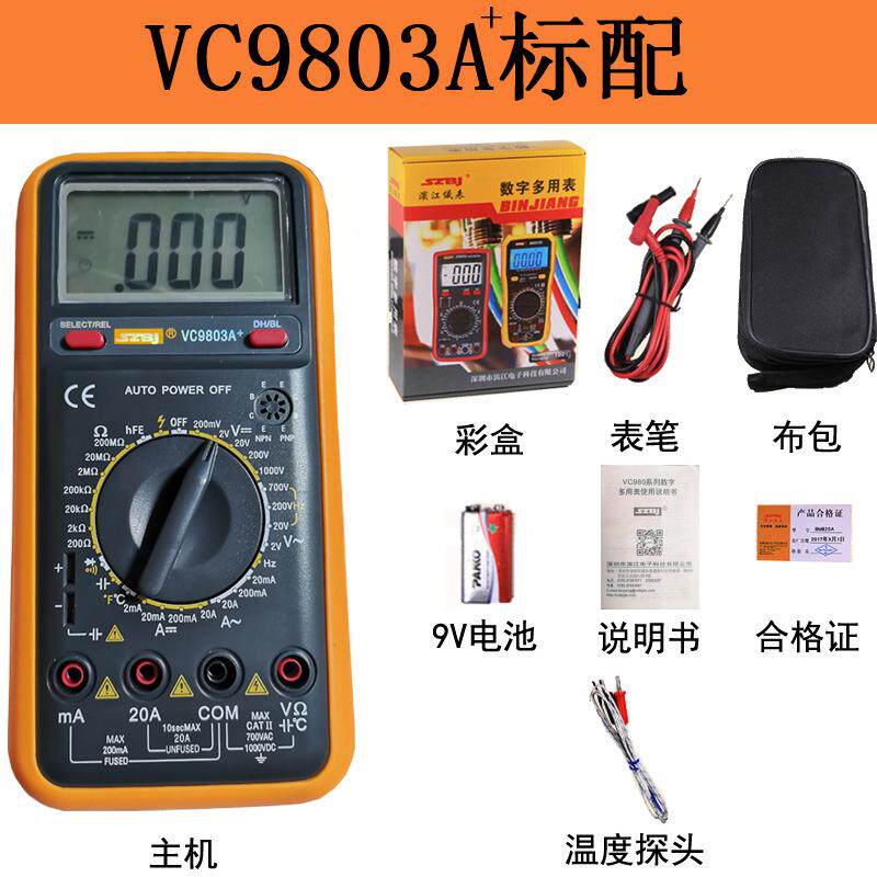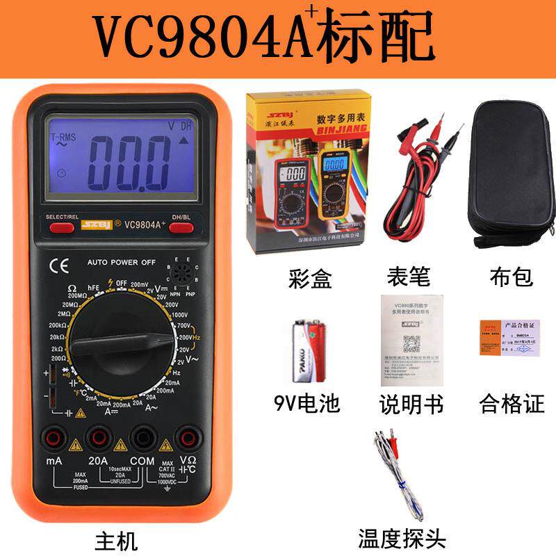 📚 滨江VC9801A+数字万用表测频率电容温度自动关机过载保护VC9805A+