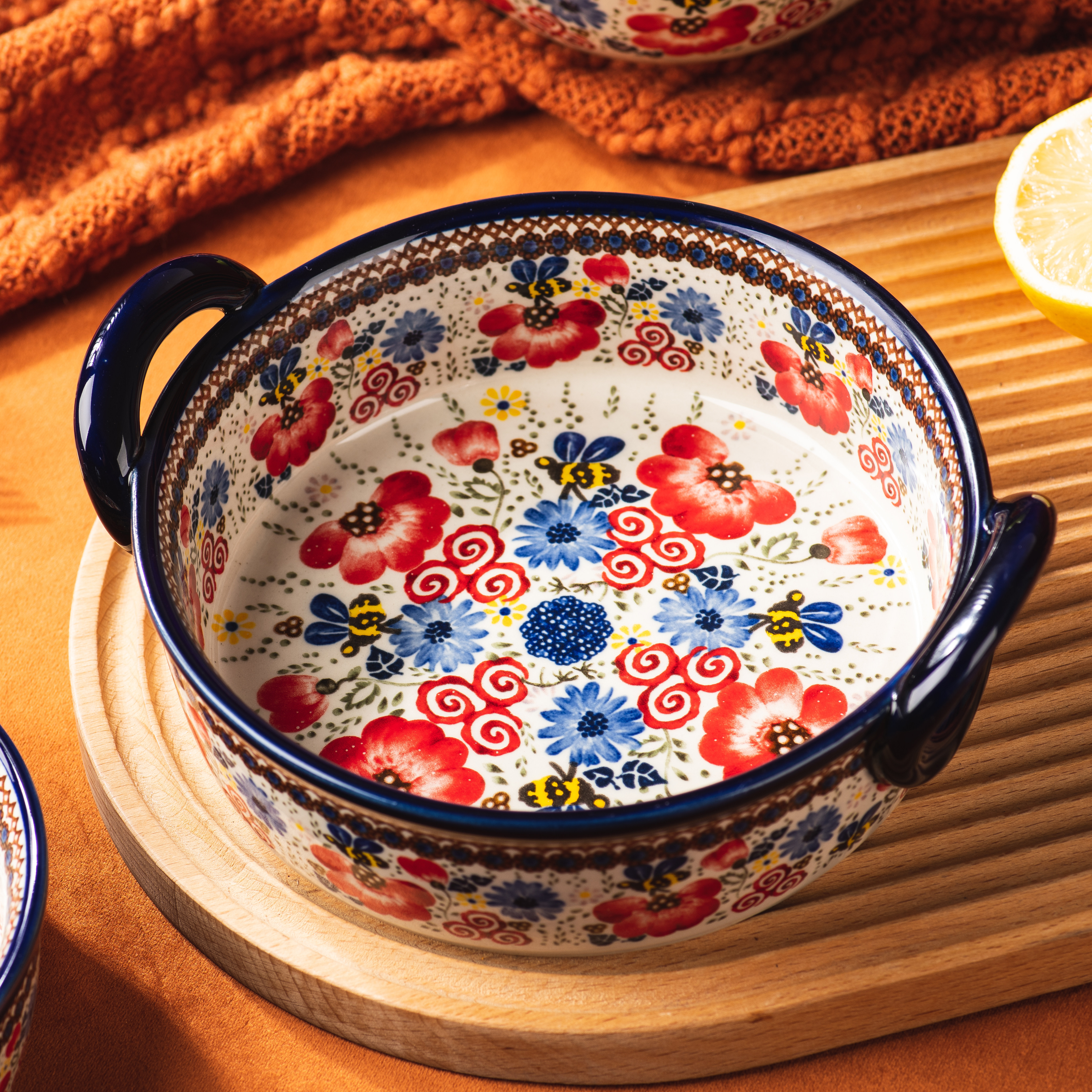 📚 波兰陶瓷碗复古餐具家用双耳碗汤碗大碗面碗个人专用烤箱专用烤碗