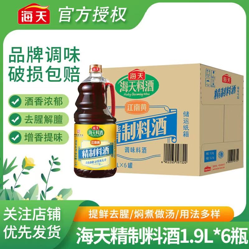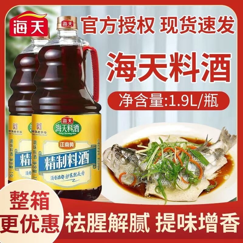 📚 海天精制料酒1.9L江南黄解膻炒菜调料家用大桶整箱调味料瓶装去腥