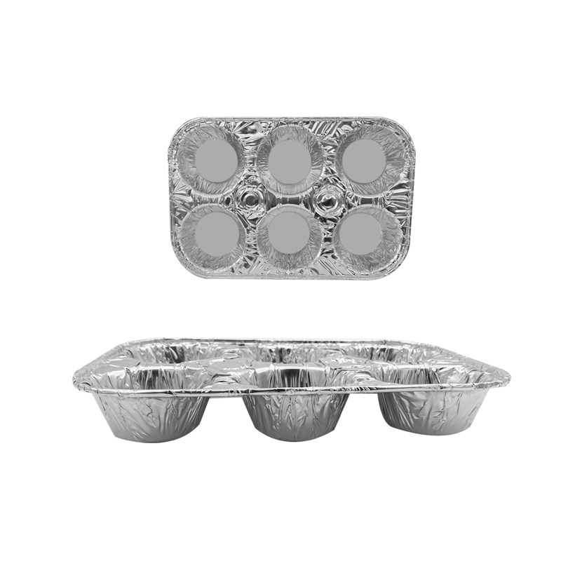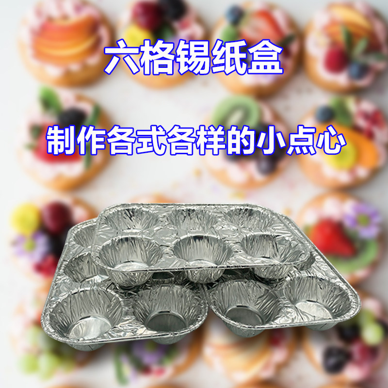 📚 六格锡纸盒装包子面包小蛋糕点心分格打包盒蒸糕耐高温一次性餐盘