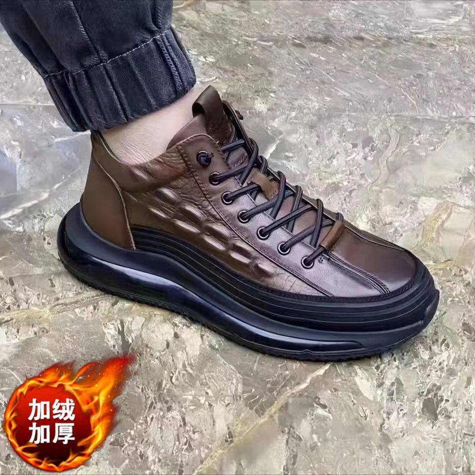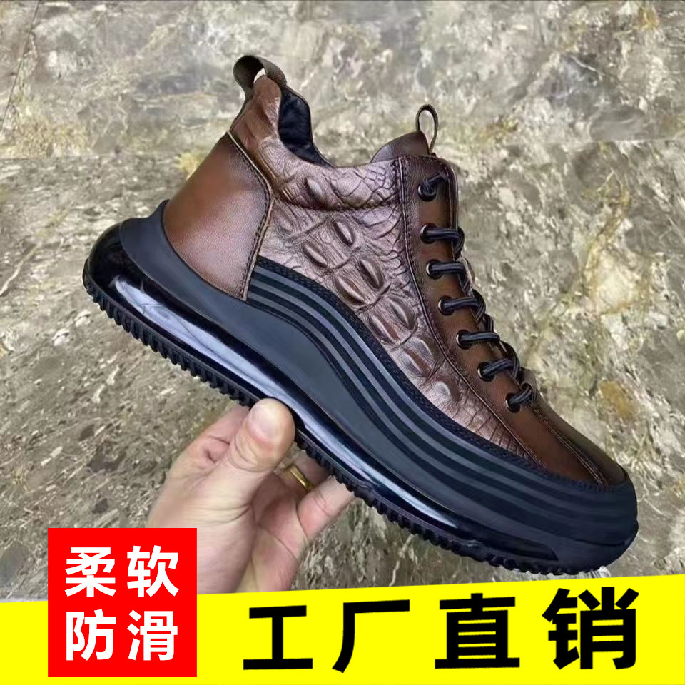 📚 男鞋清仓潮流防水休闲皮鞋男士鳄鱼纹鞋百搭软底减震运动鞋增高