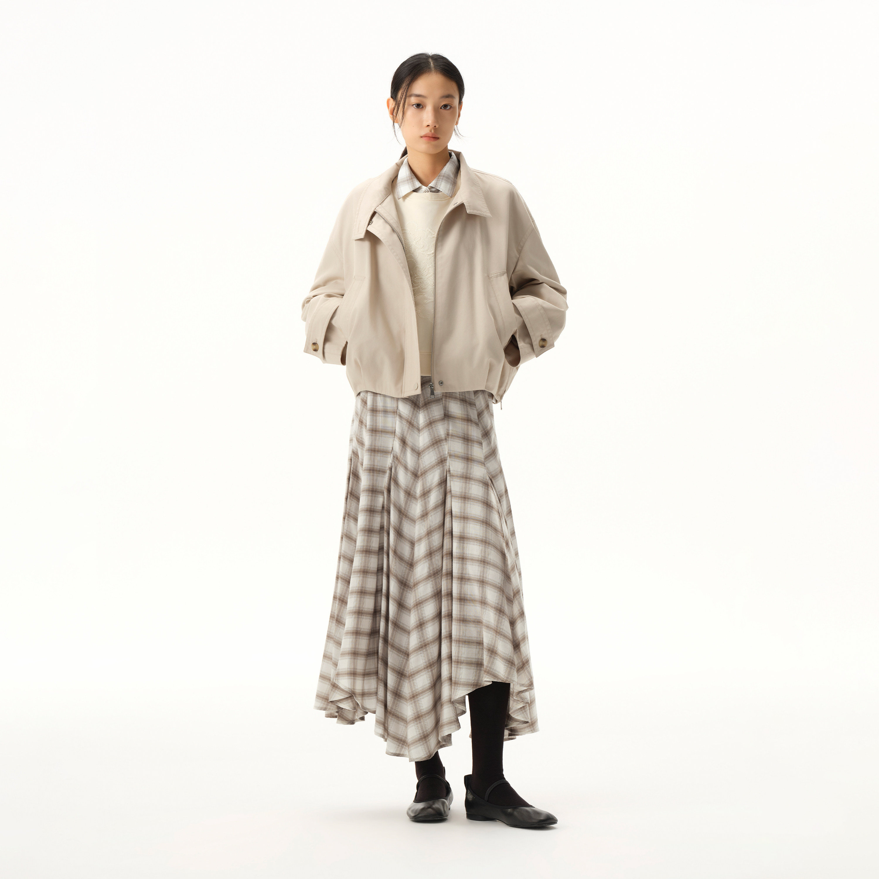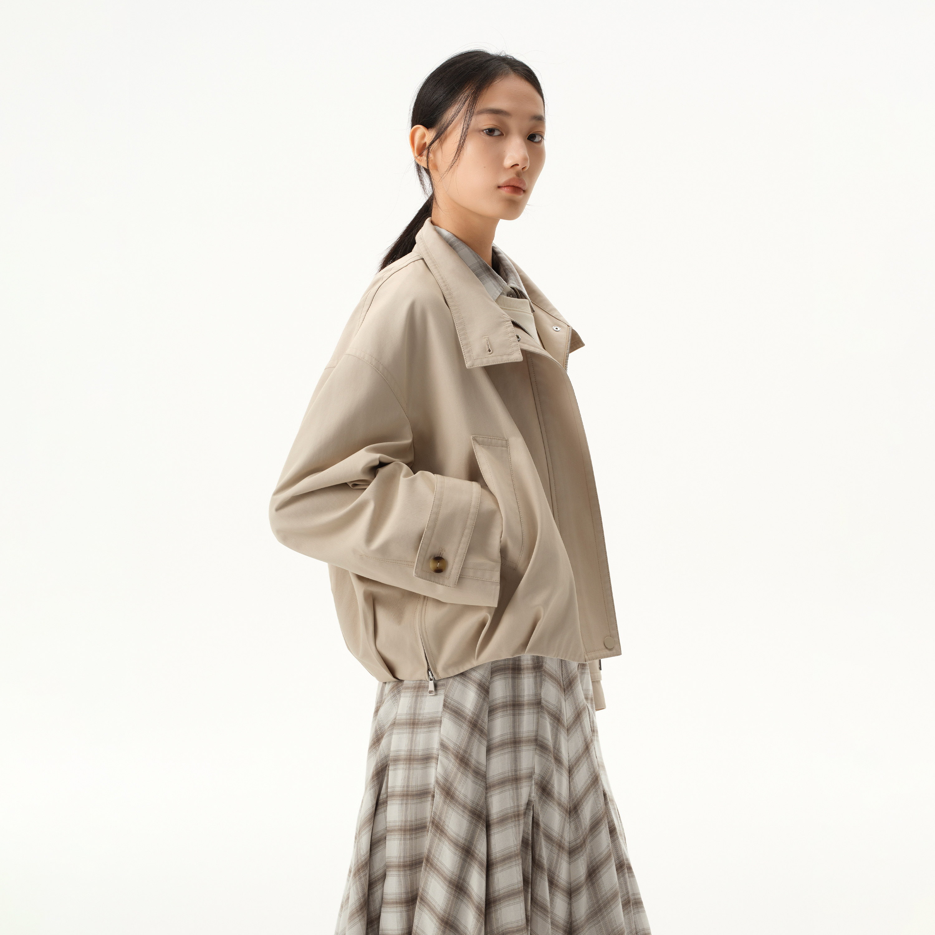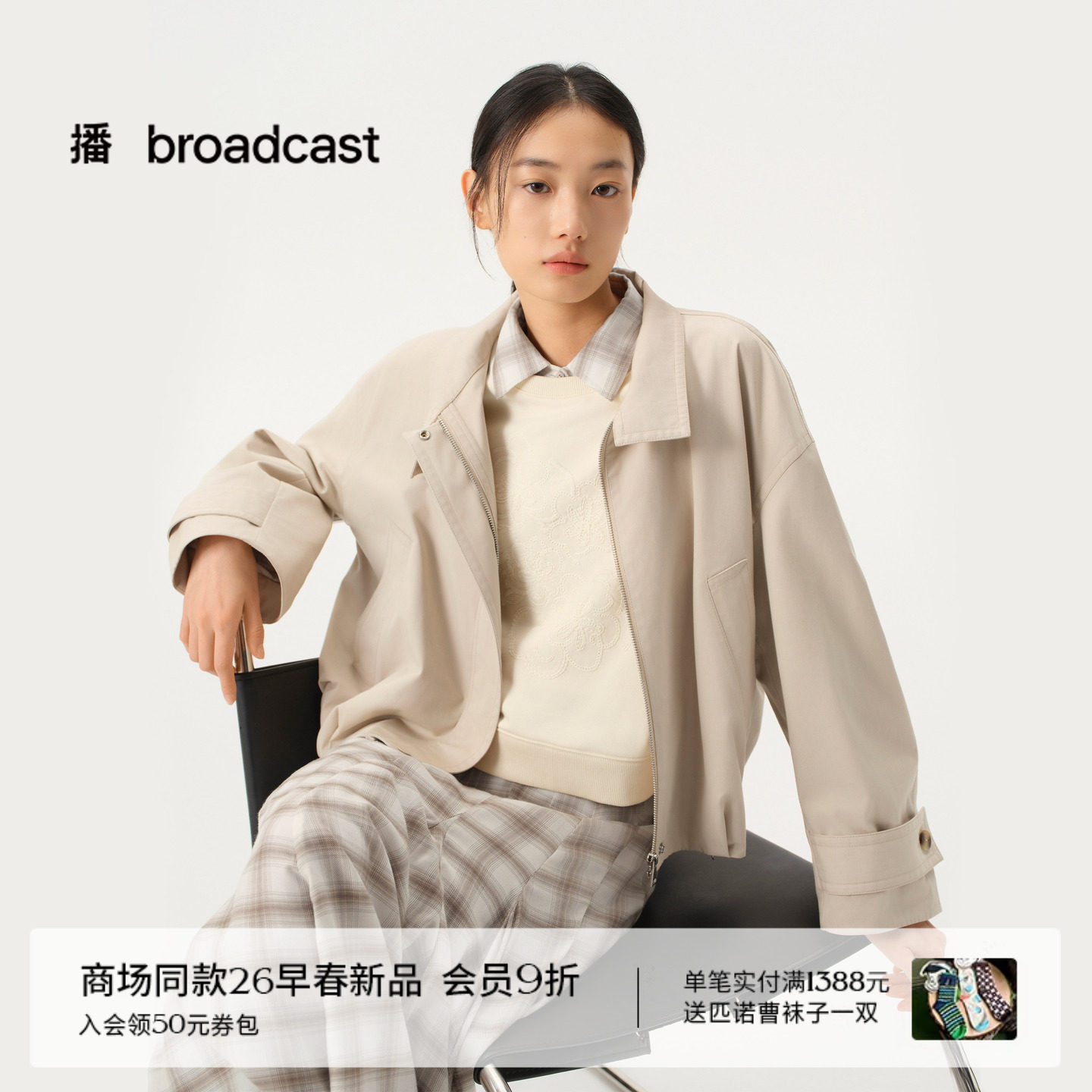 📚 播商场同款摩登复古风短款立领宽松短外套女26春新款BDT1WD1180