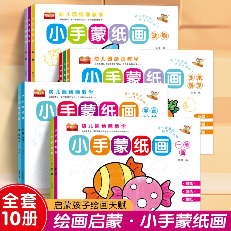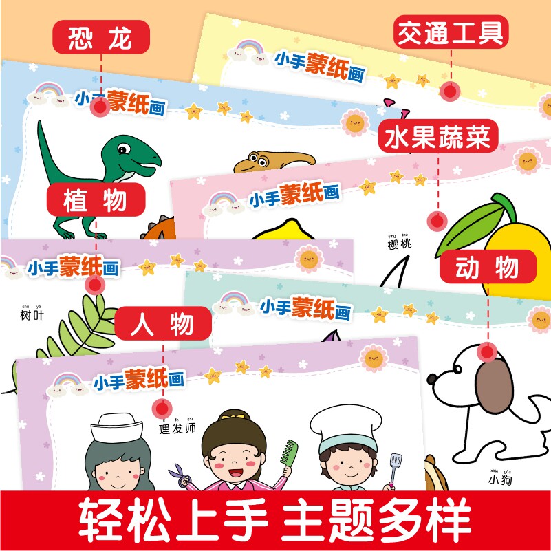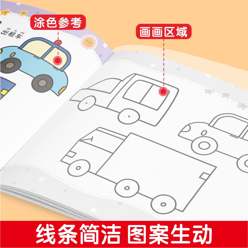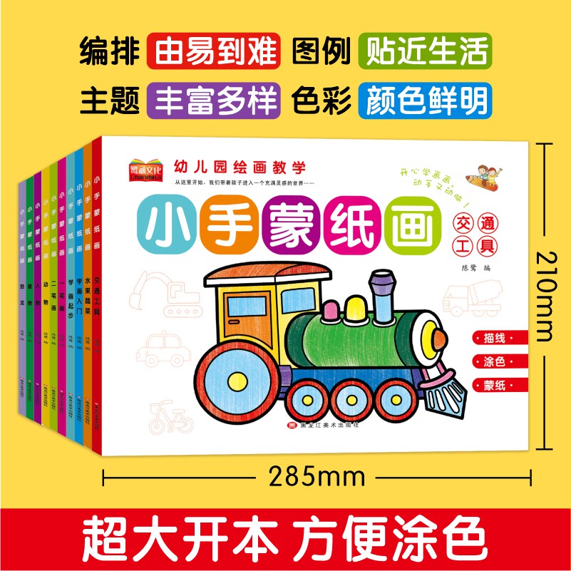 📚 幼儿园绘画教学小手蒙纸画恐龙二笔画一笔画学画起步交通工具学画入门水果蔬菜宝宝涂鸦涂色绘本幼儿园儿童绘画启蒙临摹填色简笔画