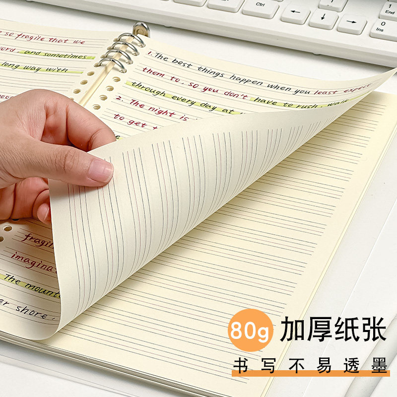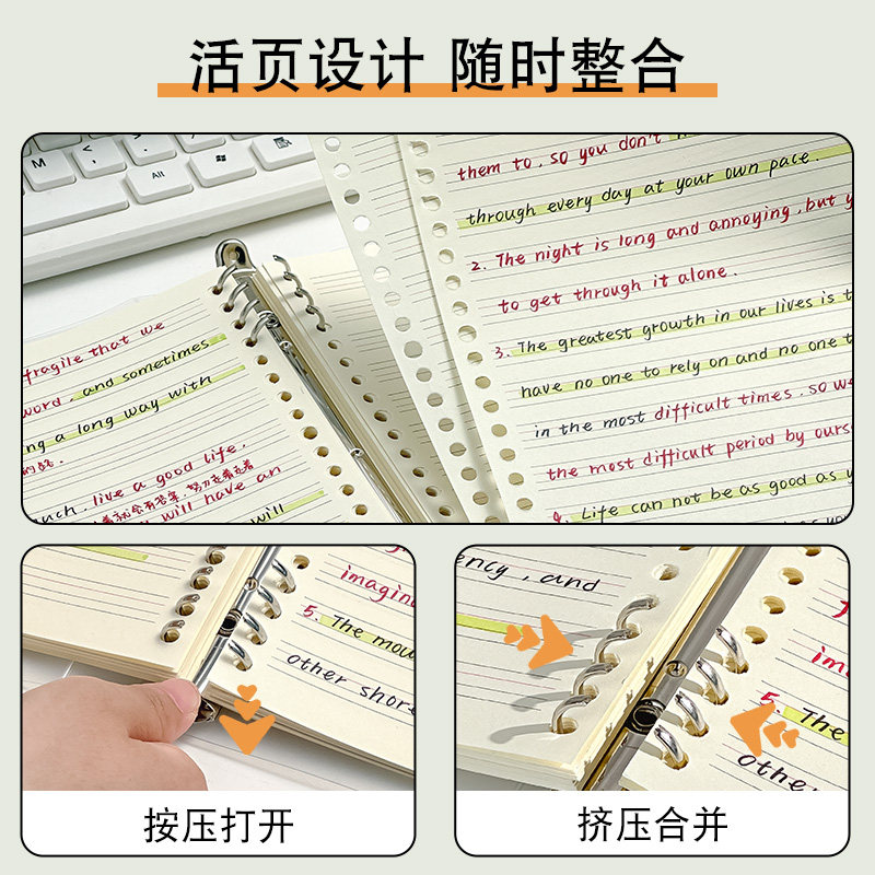 📚 三年二班 活页英语本笔记本子可拆卸加厚b5英文本小学生初中生单词本大学生考研笔记整理超厚16开活页纸替芯