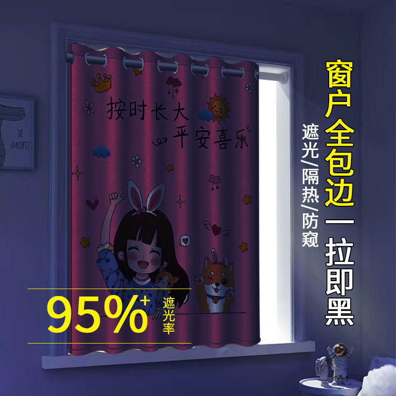 📚 儿童房小窗户窗帘遮光2026新款免打孔安装遮挡帘女孩卧室高档挂帘