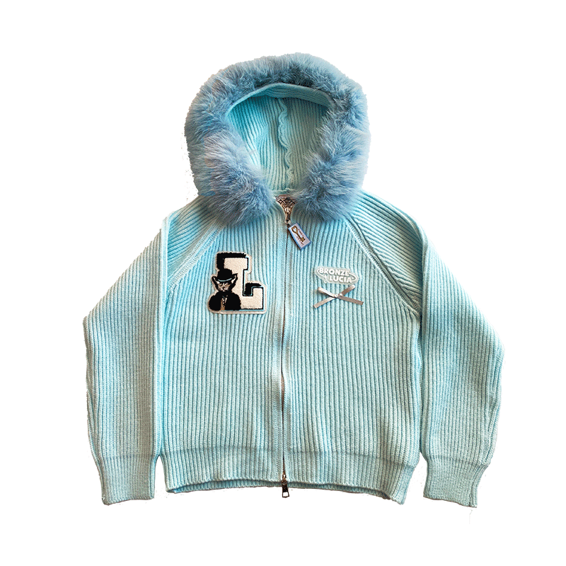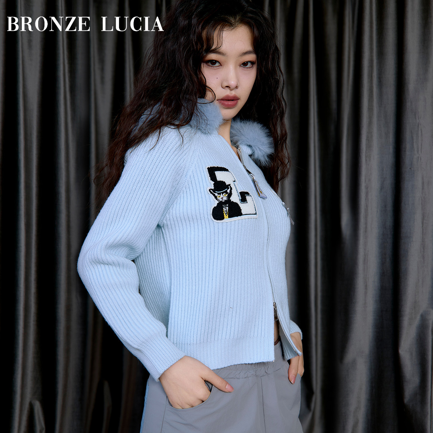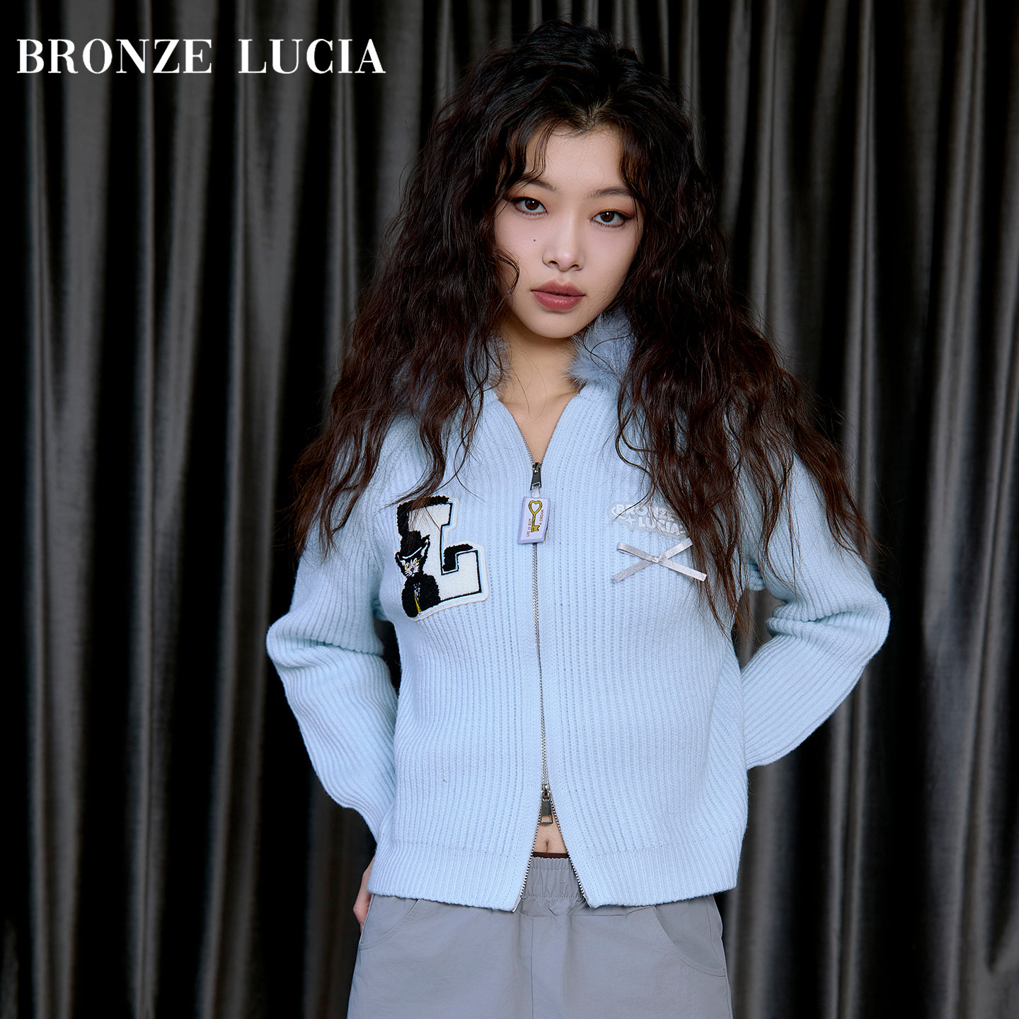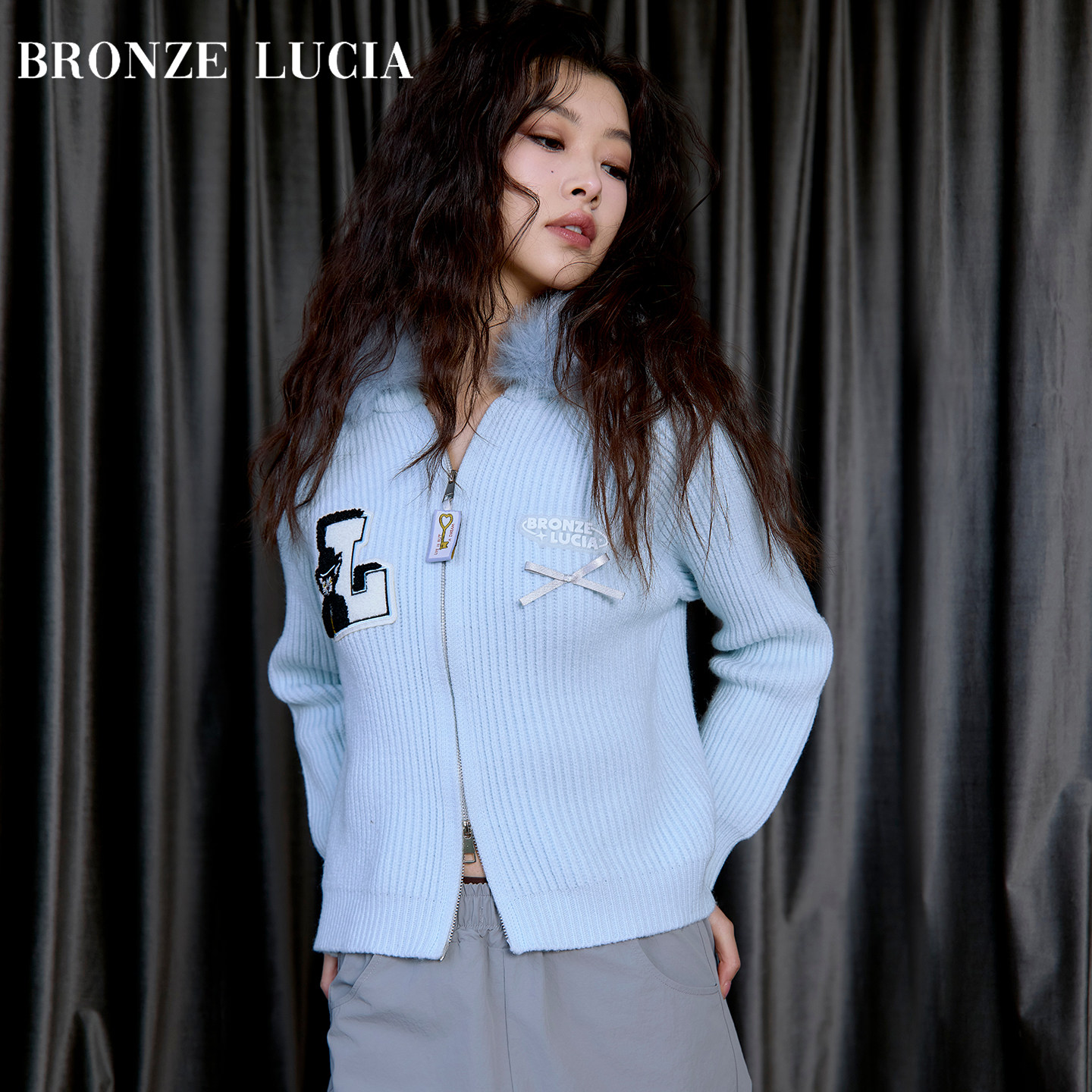 📚 Bronze Lucia冰雾蓝绒针织连帽开衫原创设计修身打底针织衫外套