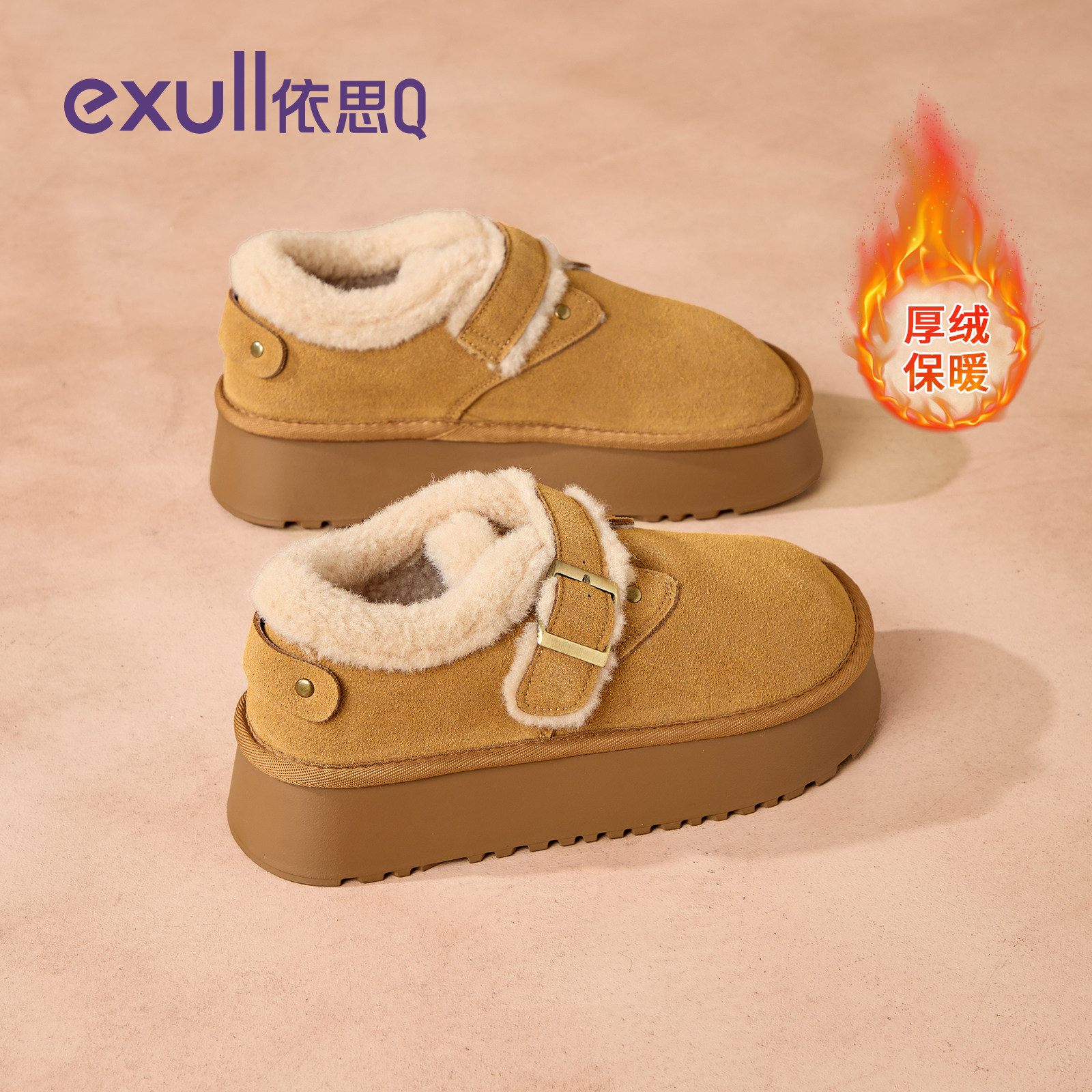 📚 依思q厚底加绒女鞋冬季百搭一脚蹬面包勃肯包跟棉鞋女外穿雪地靴