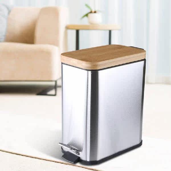 📚 Step Trash Can Garbage Rubbish Bin with Bamboo Lid Waste