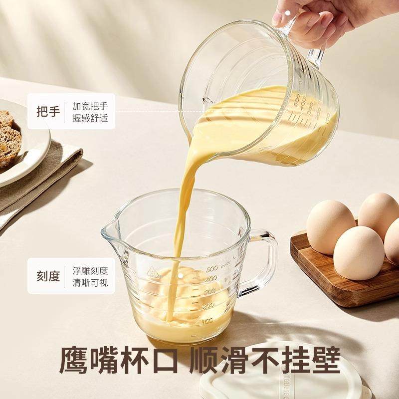 📚 玻璃量杯带刻度有手柄带盖食品级牛奶杯耐高温微波炉家用烘焙打蛋
