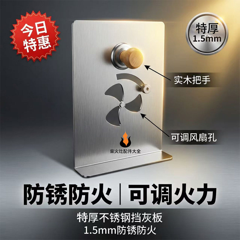 📚 柴火灶底部控火挡灰板挡烟板特厚不锈钢家用防风配件灶坑定