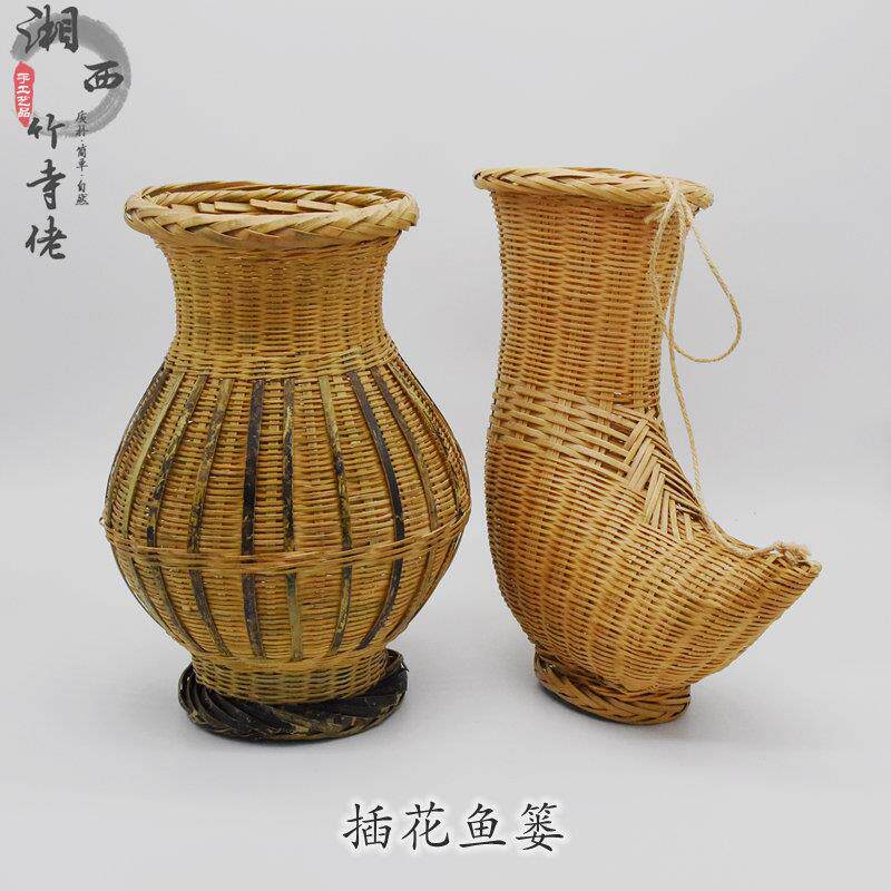 📚 纯手工竹编插花花瓶传统腰篓竹篓子鱼篓竹篮竹筐装饰道具挂饰摆件