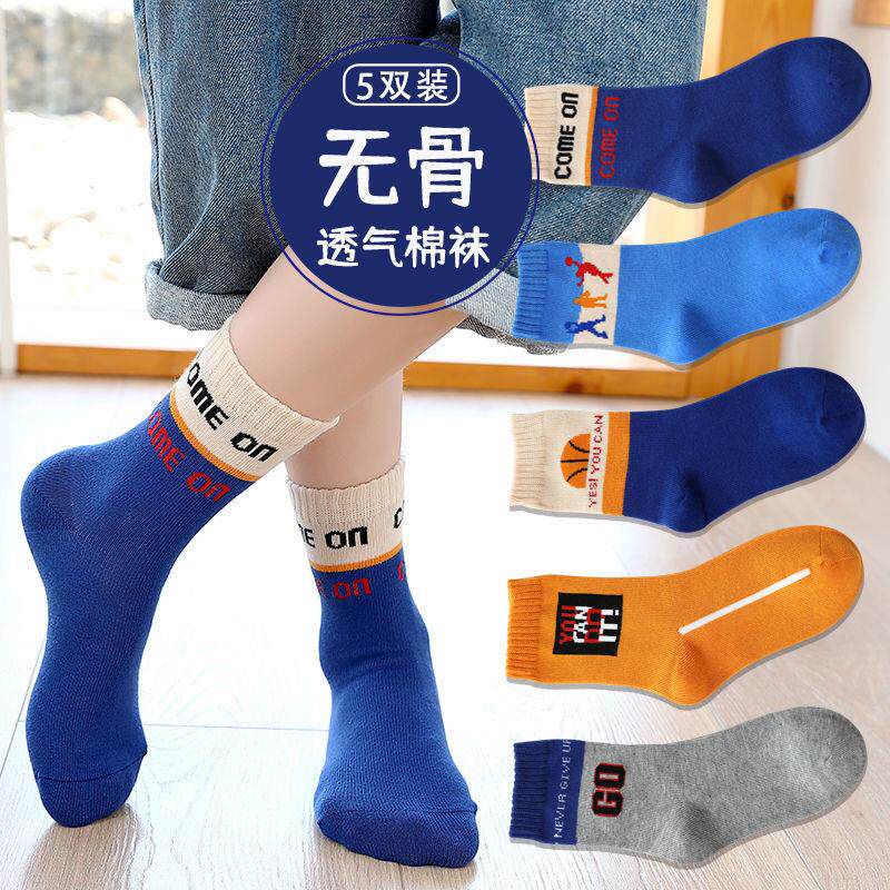 📚 儿童袜子纯棉100%无骨男童中大童女运动全棉篮球中筒袜春秋季秋冬