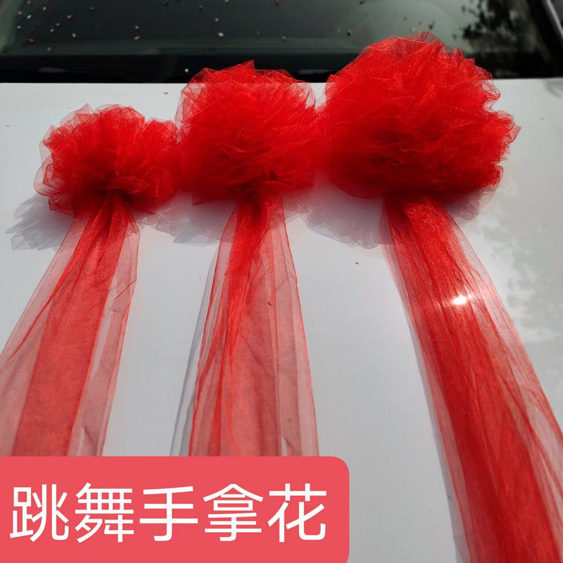📚 跳广场舞红色绣球花一对儿童成人舞蹈表演道具大红手拿水晶纱拉花