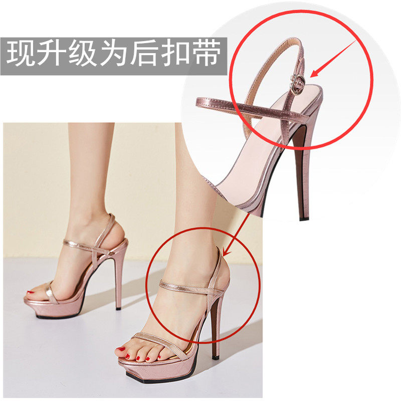 📚 恨天高高跟鞋2025夏季新款厚底防水台露趾凉鞋真皮超高跟一字带扣
