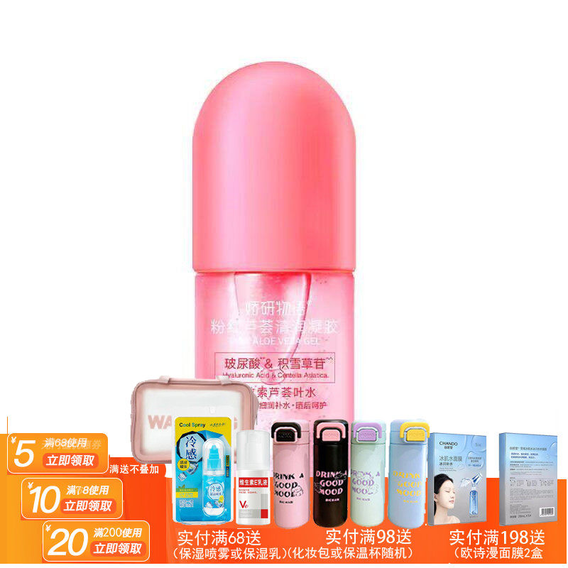 📚 娇研物语粉红芦荟清润凝胶300ml保湿芦荟胶新老包装升级随机发
