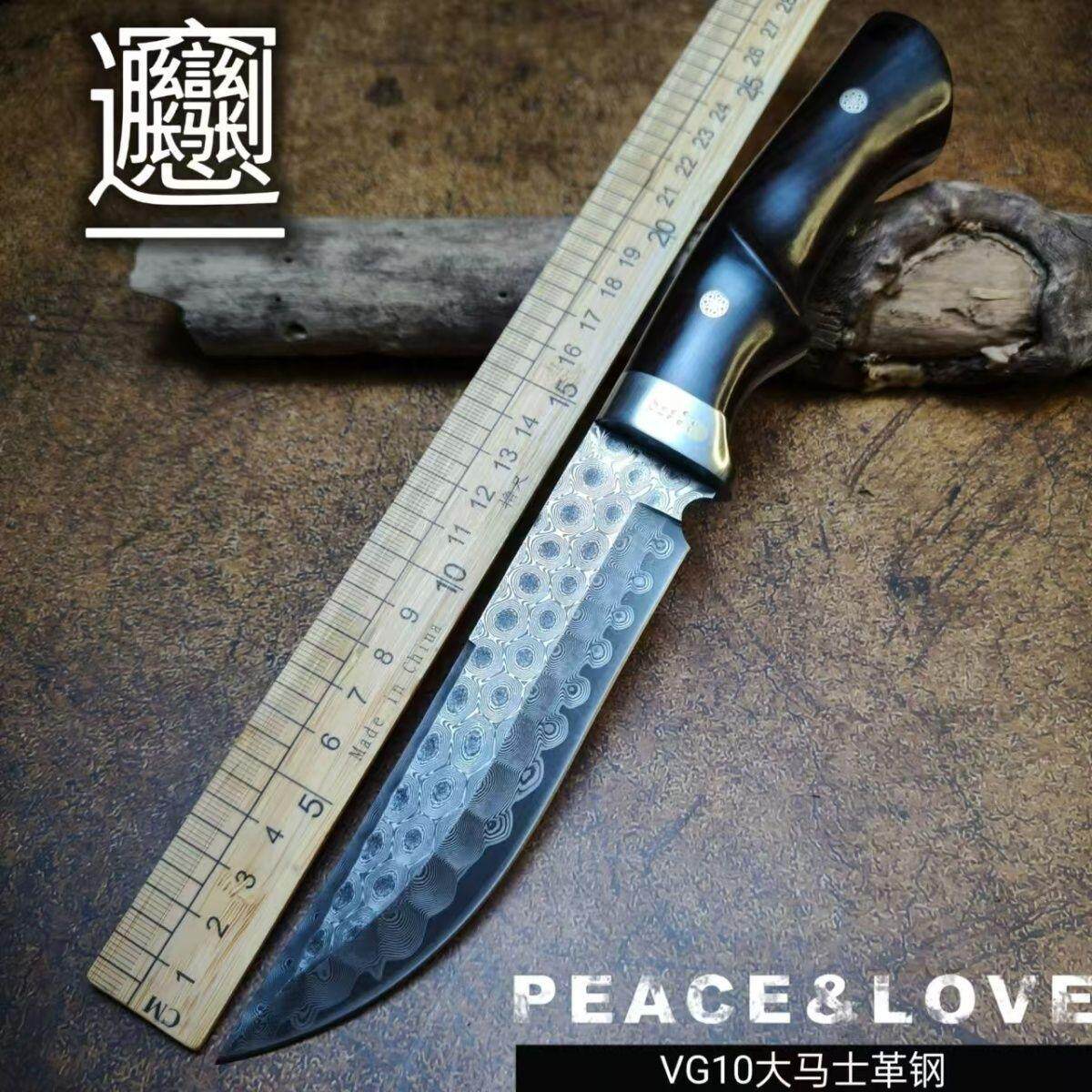📚 大马士革钢刀荒野求生露营防身水果多功能户外便携水果刀直刀开刃