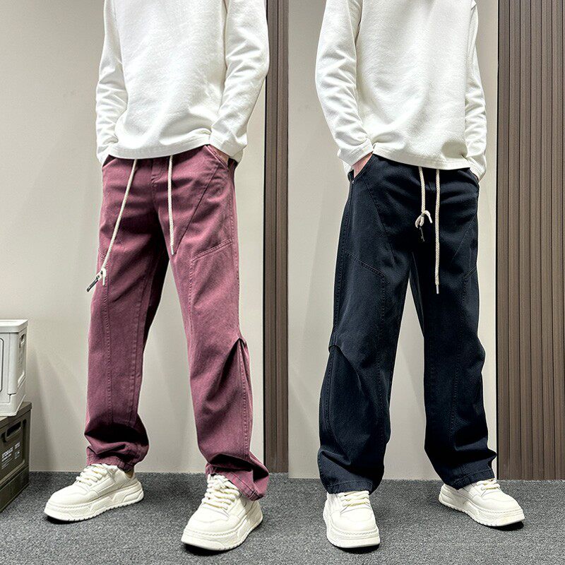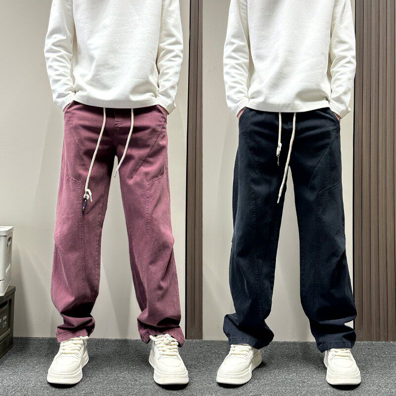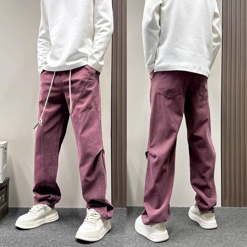 📚 美式潮牌安可拉红伐木休闲裤男款春秋季宽松直筒裤痞帅纯色男裤子