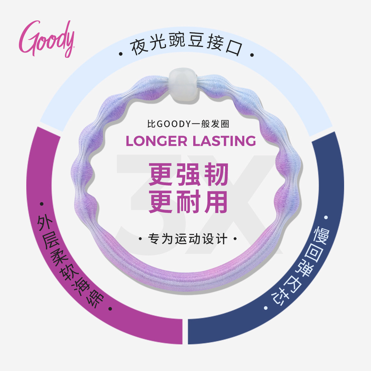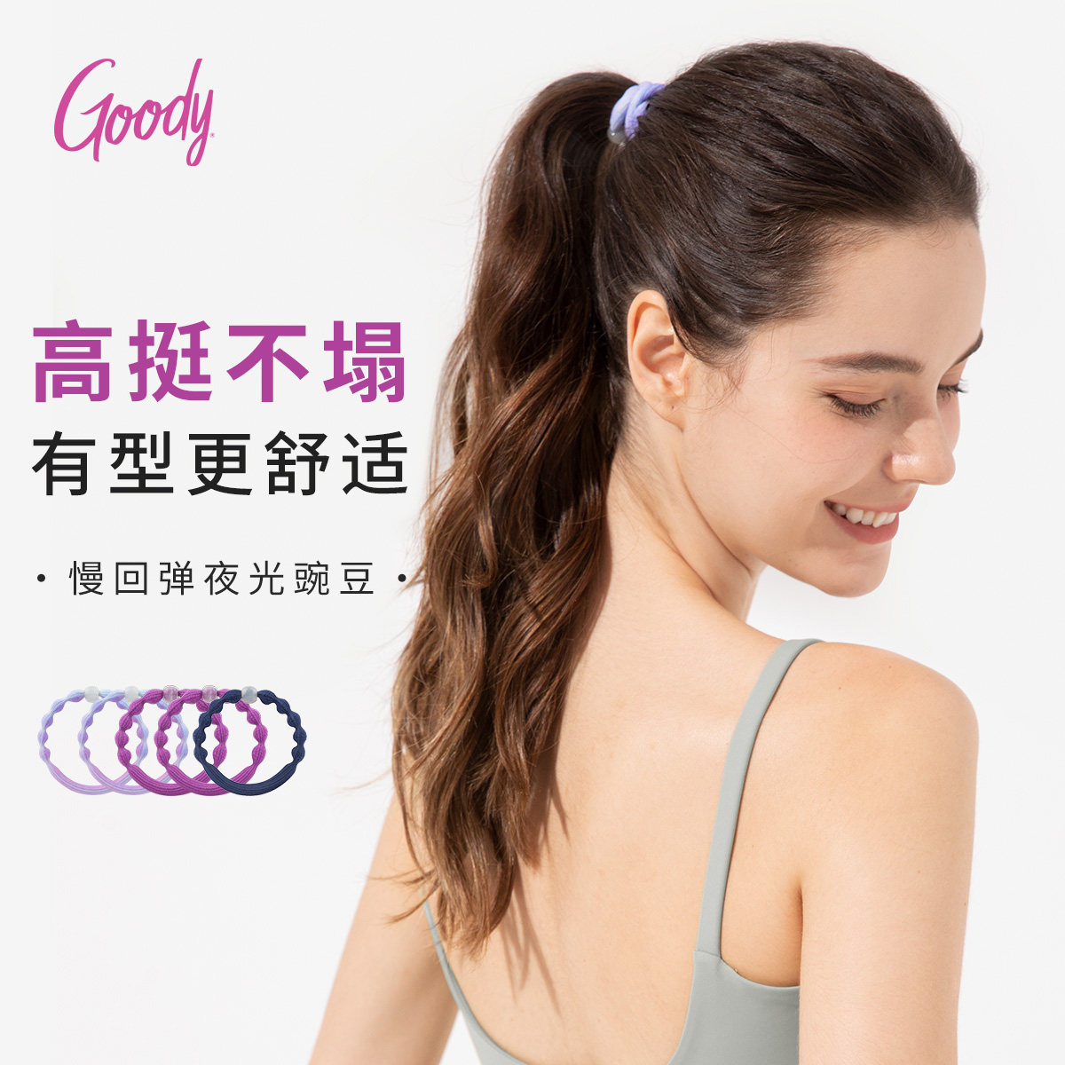 📚 Goody歌妮发圈豌豆女夏发绳不伤发高弹夜跑运动高马尾扎发橡皮筋