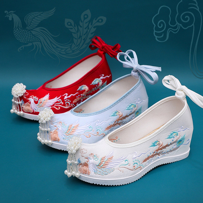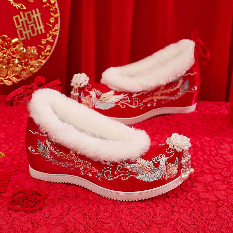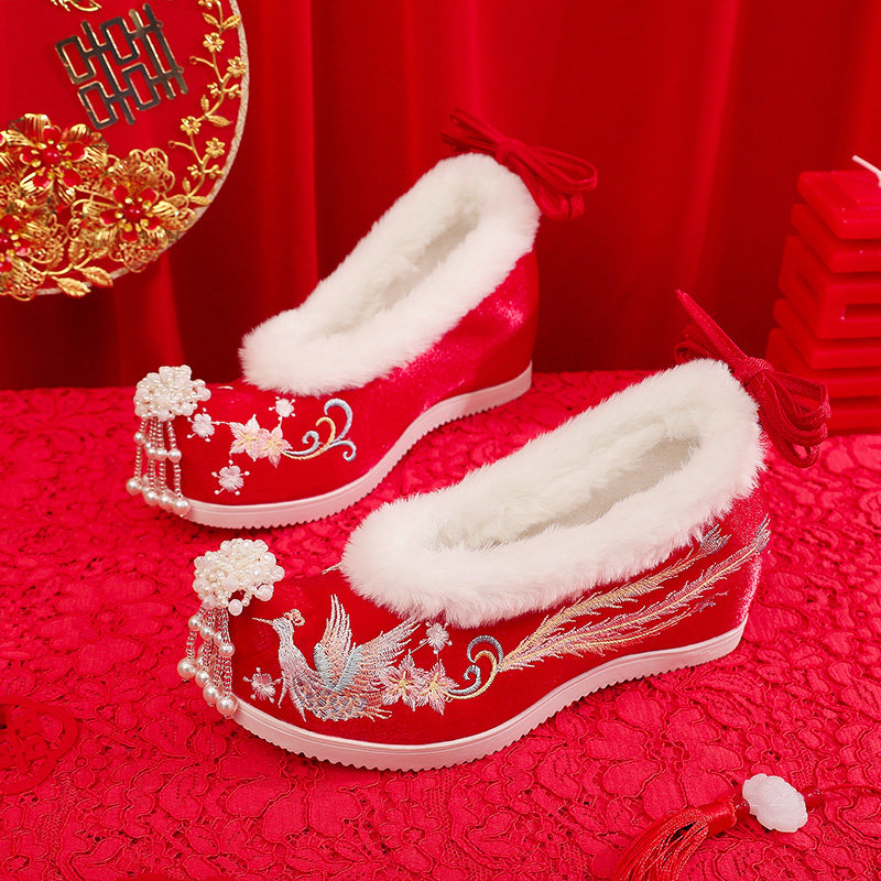 📚 汉服鞋子女内增高配旗袍绣花鞋民族风复古鞋浅口禾婚鞋春秋冬季