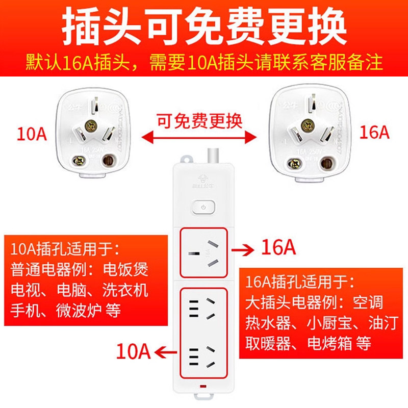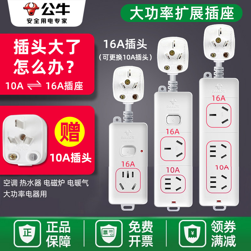 📚 公牛空调专用插座10a转16a三孔插排16安大功率插线板转换器延长线