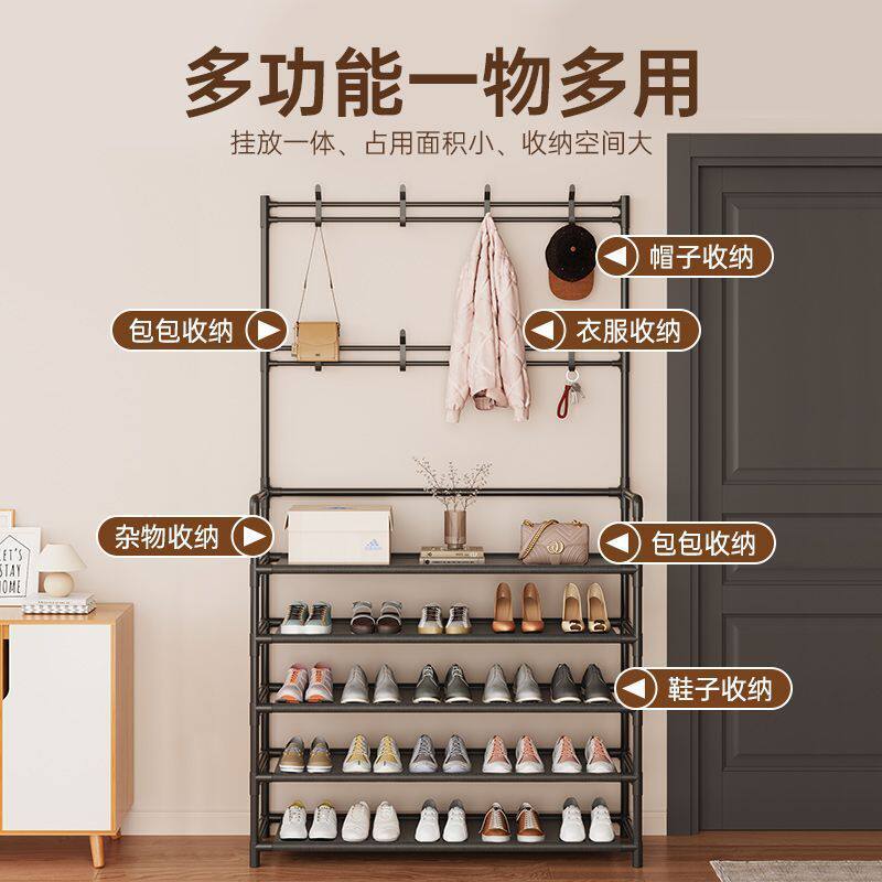 📚 家用门口衣帽架落地一体式鞋帽架宿舍出租房多功能挂衣挂包置物架