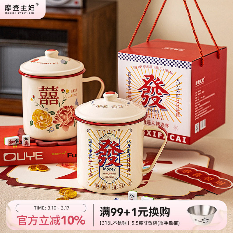 📚 摩登主妇搪瓷杯大号大茶缸泡面杯子女漂亮喝水杯带盖马克杯伴手礼