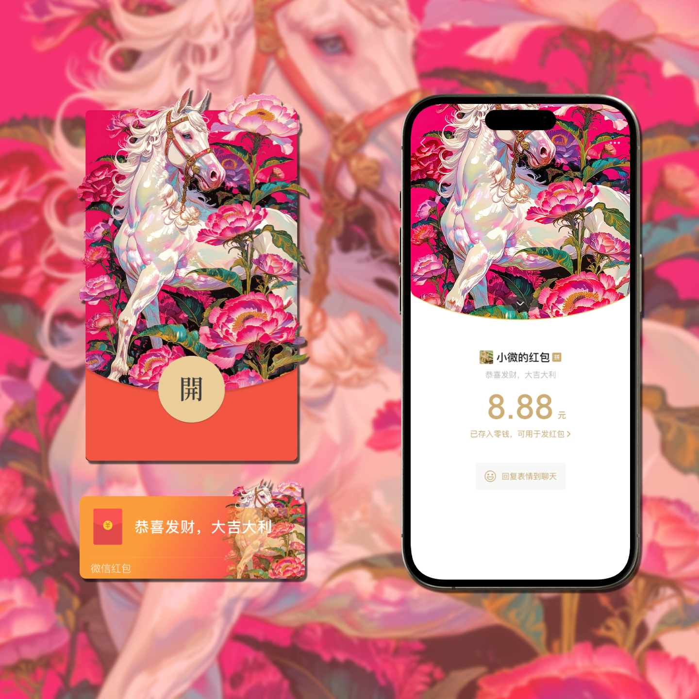 📚 马年微信红包封面2026动态红包封面春节拜年新年红包封面粉红花簇
