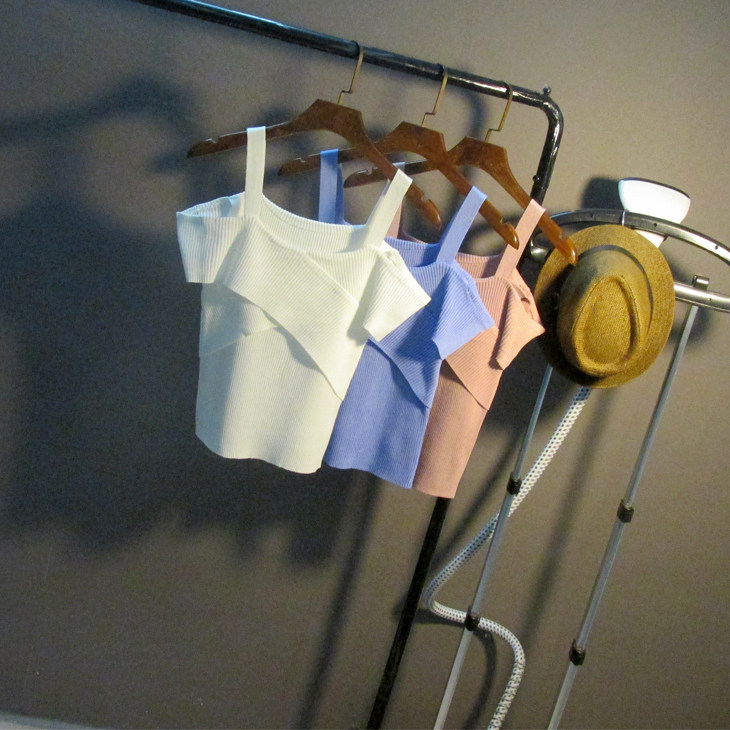 📚 韩国风2025春夏新款性感一字肩双层交叉聚拢弹力针织短款吊带背心