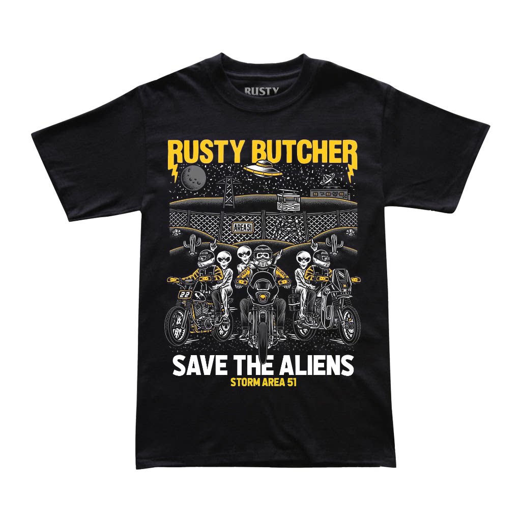 📚 哈雷T恤RustyButcher生锈屠夫摩托复古骑行西海岸短袖51区外星人