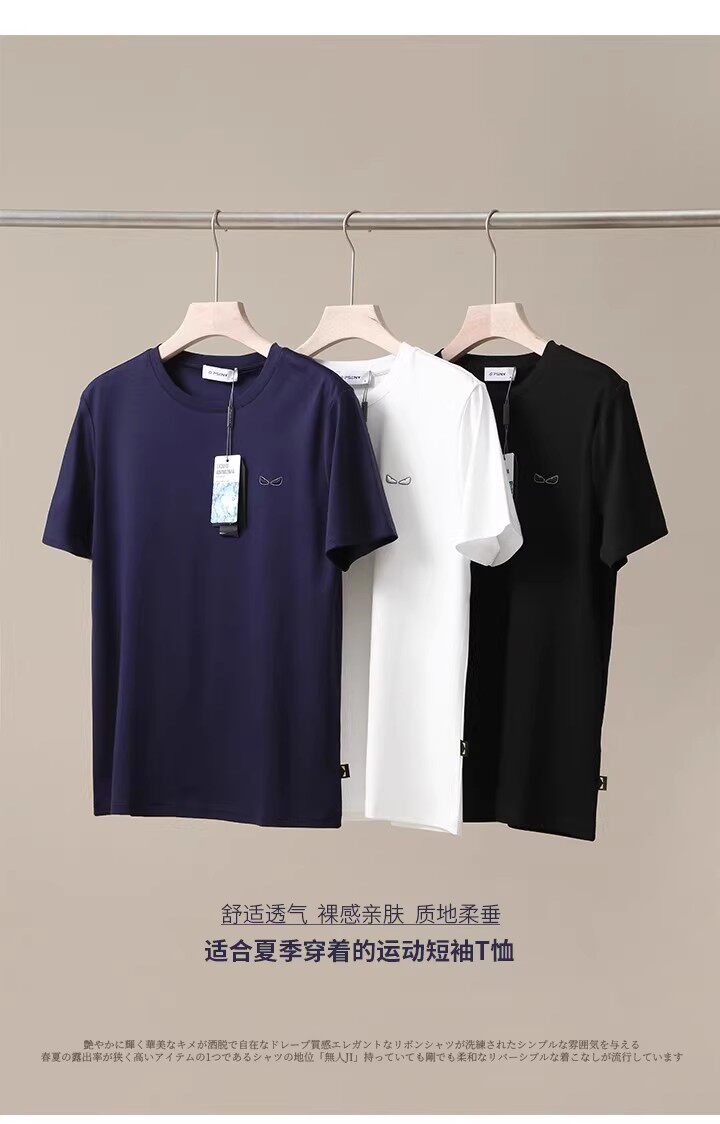 📚 科技面料2024夏季新款男士短袖透气防水防污棉感亲肤挺括T恤8876