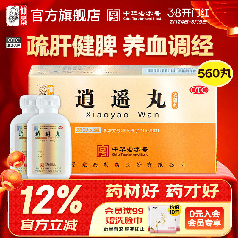 📚 仲景逍遥丸560丸*2盒疏肝健脾养血调经肝气不舒黄褐斑女月经不调
