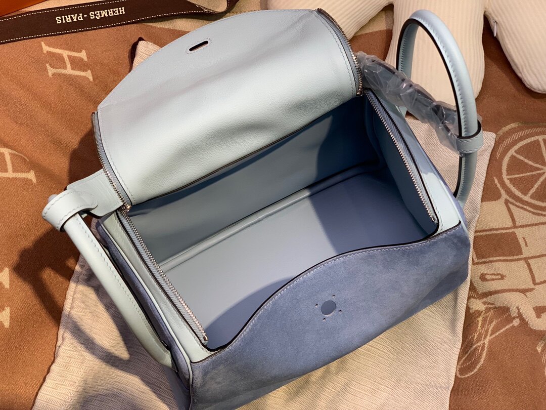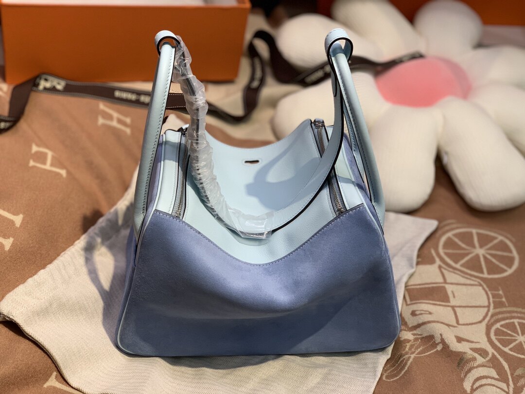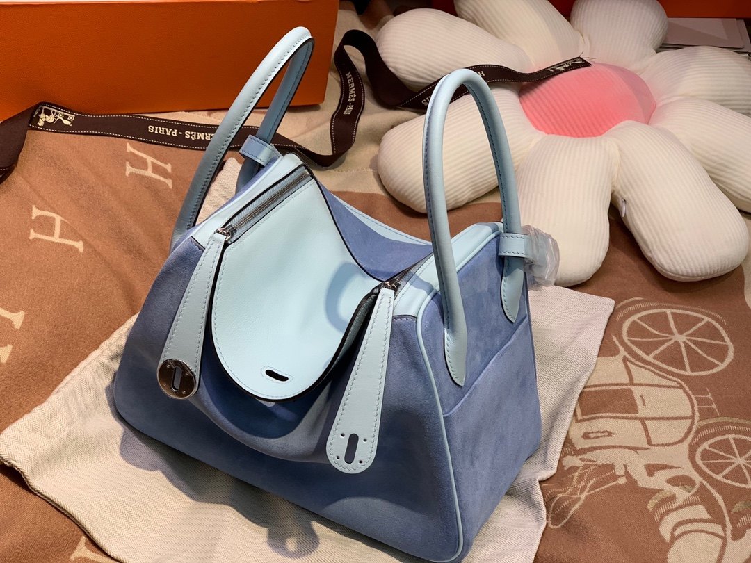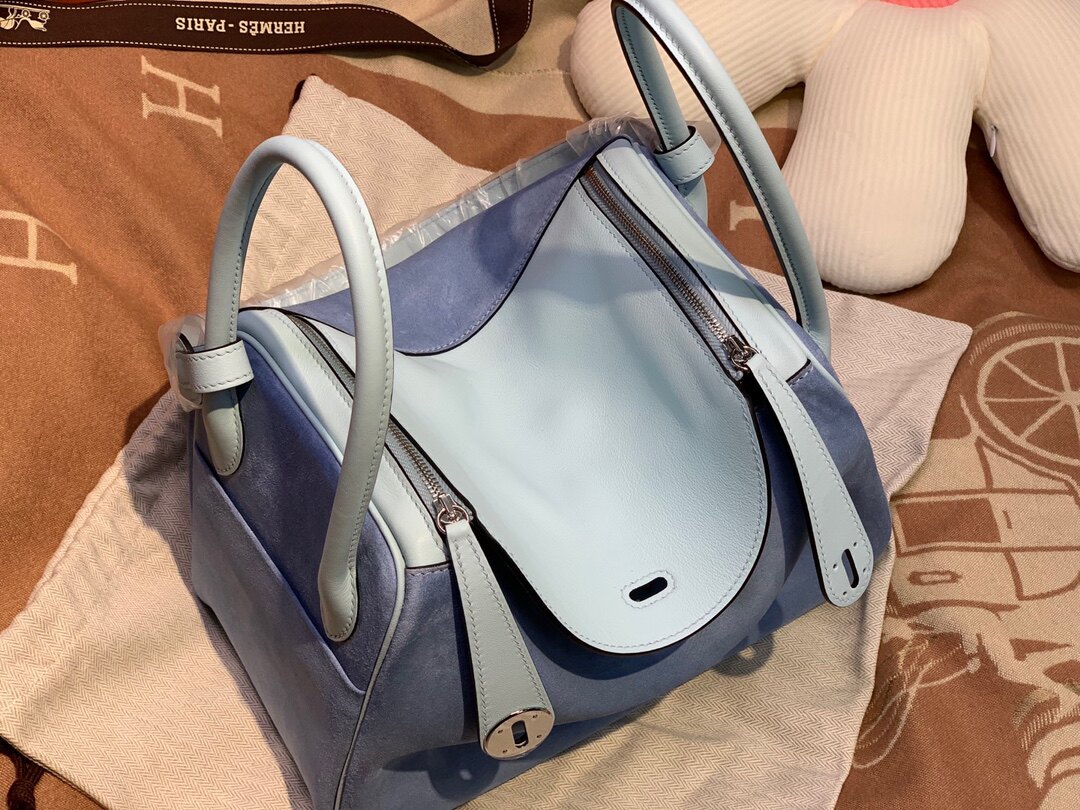 📚 微风蓝麂皮配swift皮林迪26CM女士手提包全手工女包奢侈品牌