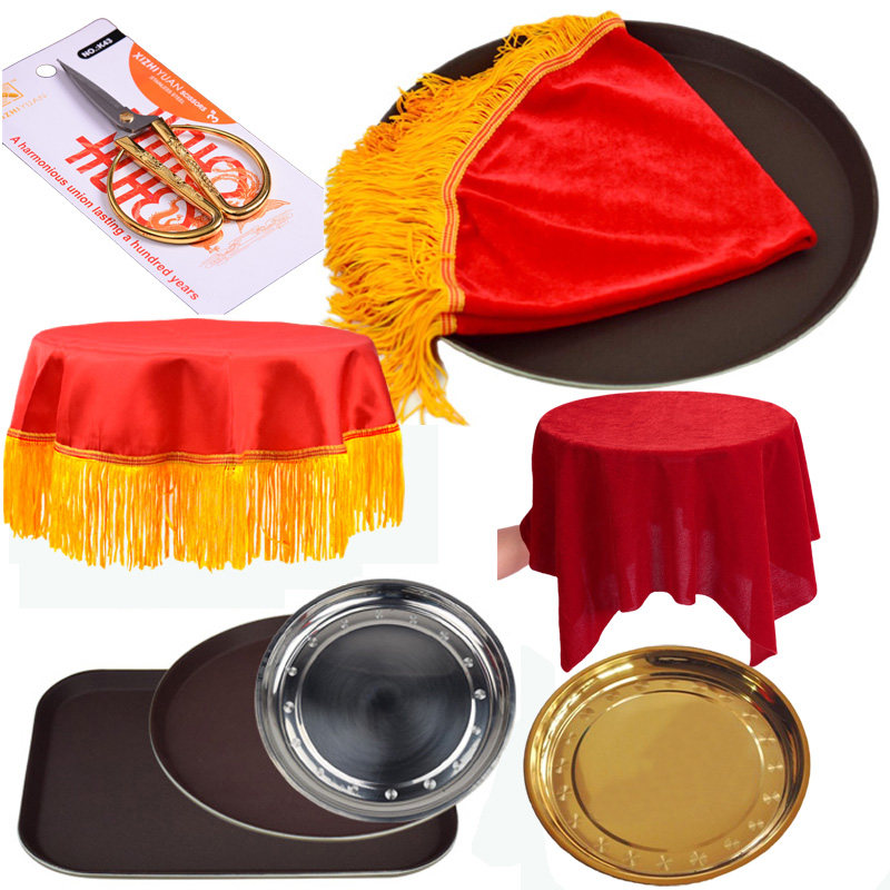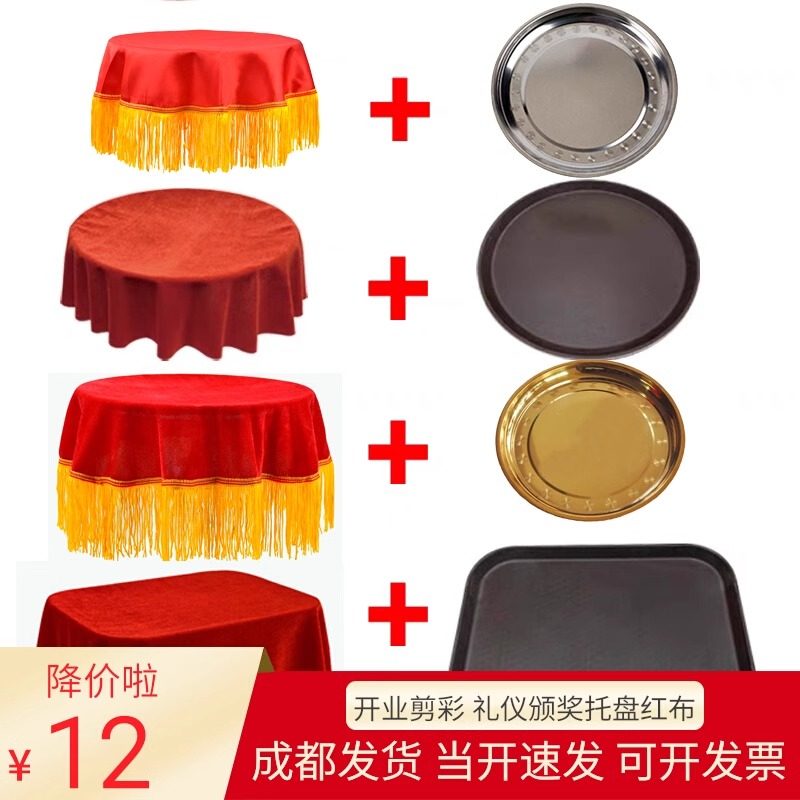 📚 加厚防滑托盘布暗红色丝绒圆盘长方形托盘开业剪彩颁奖礼仪托盘布