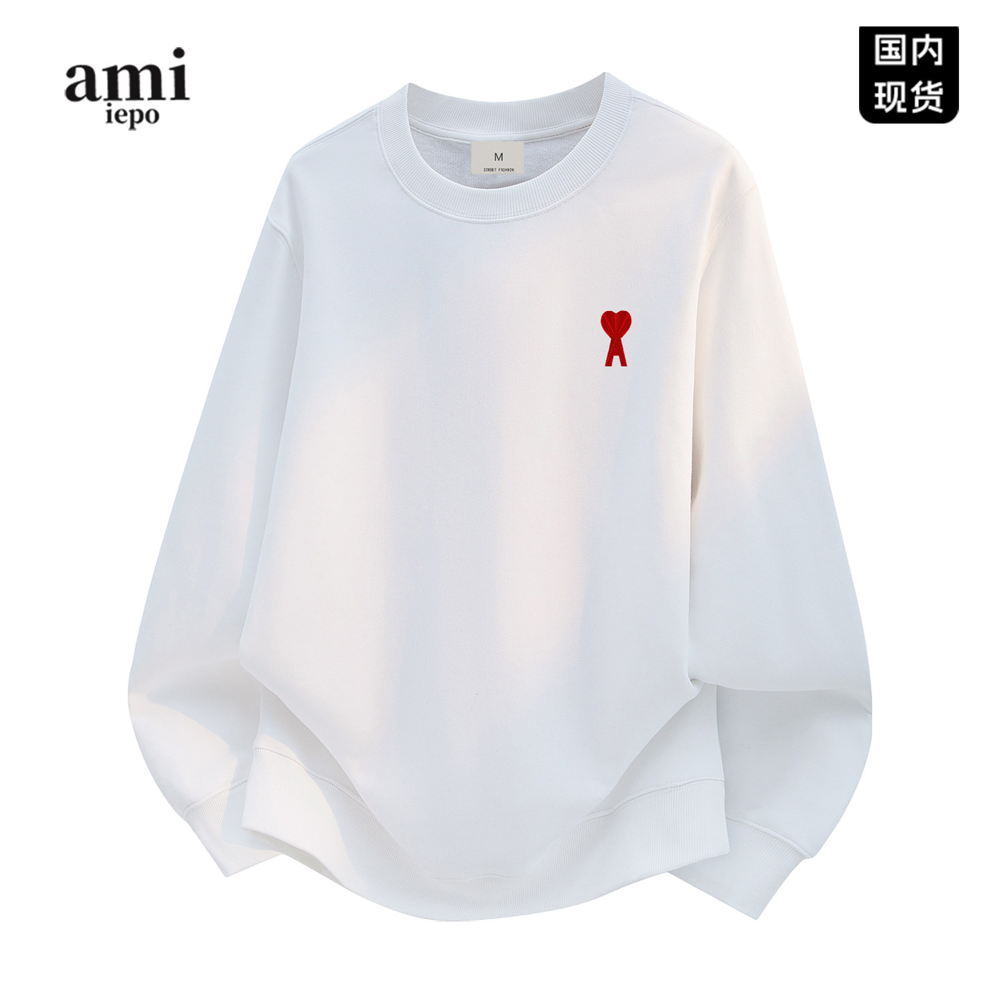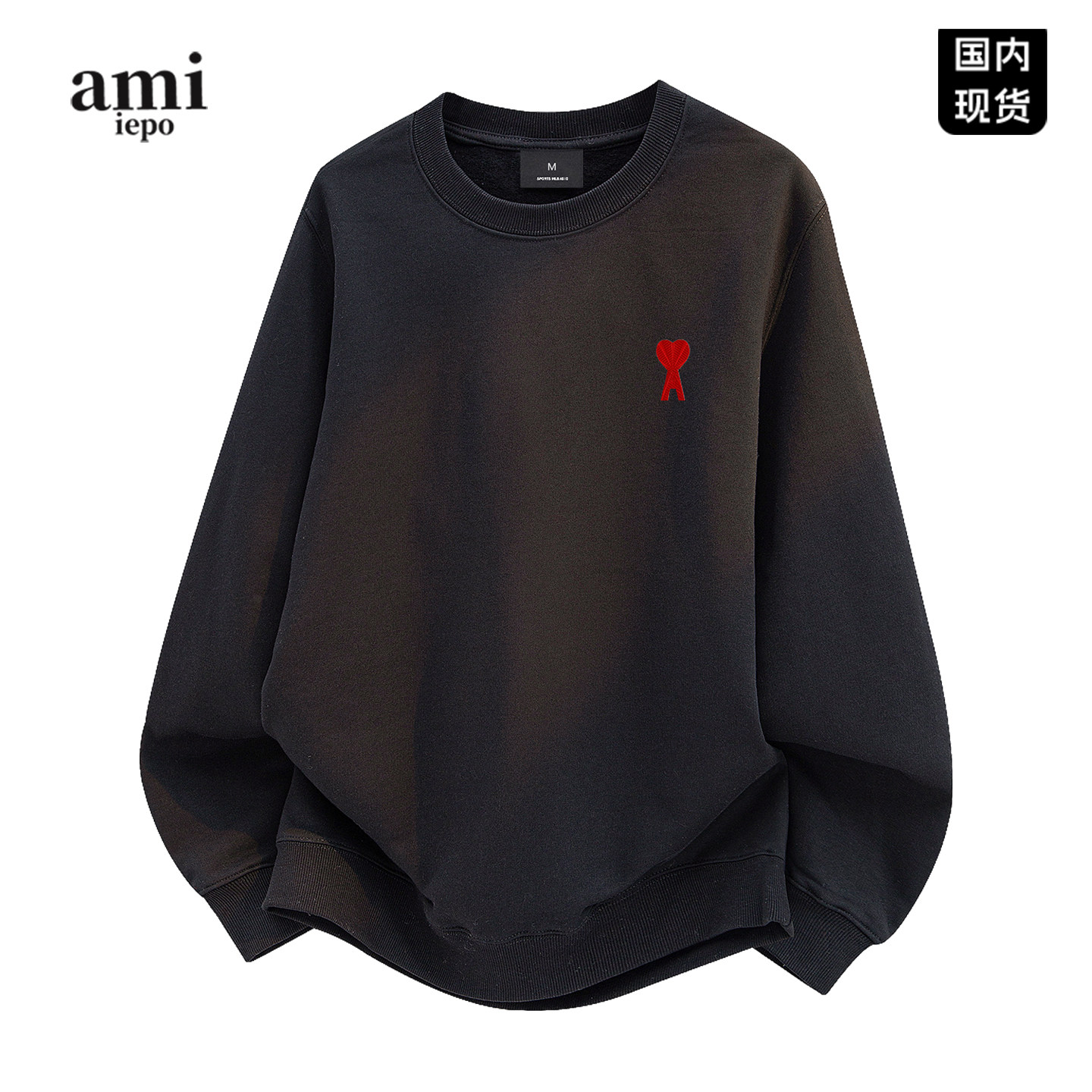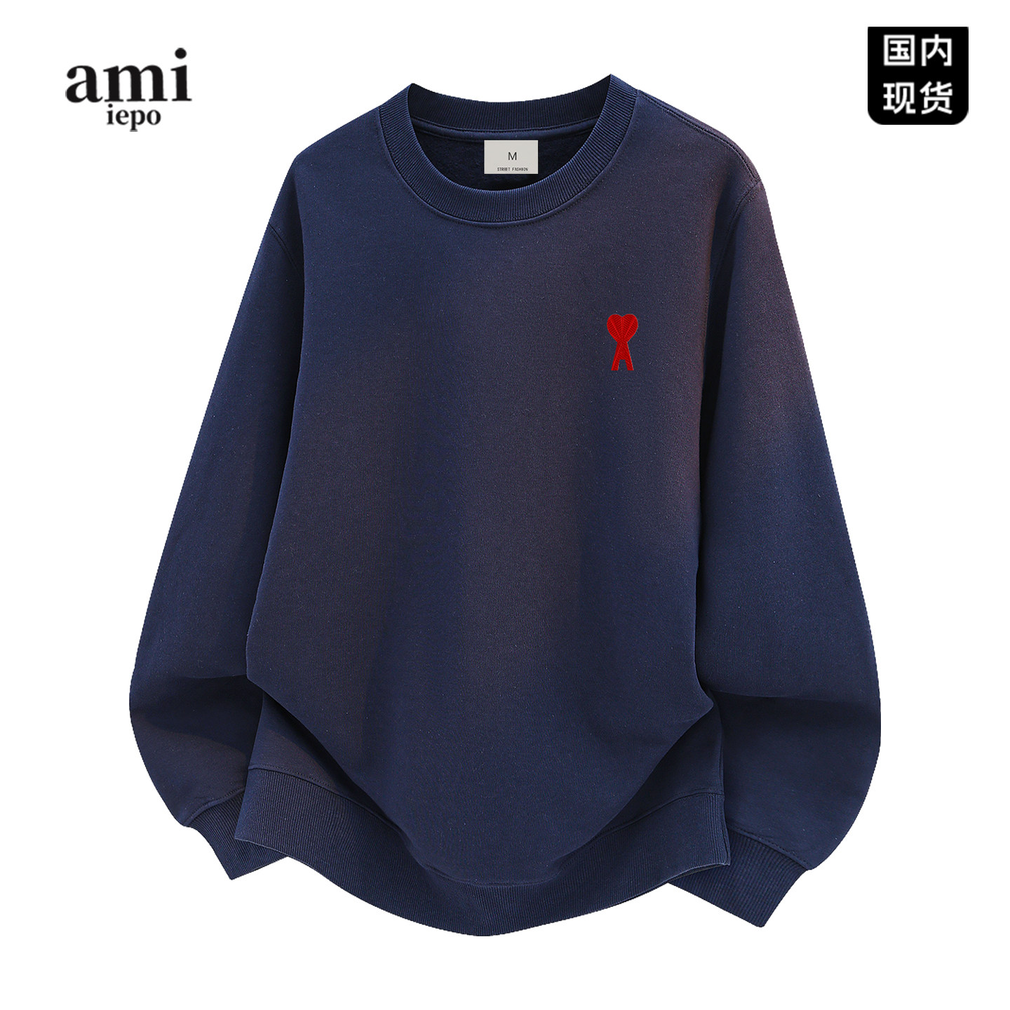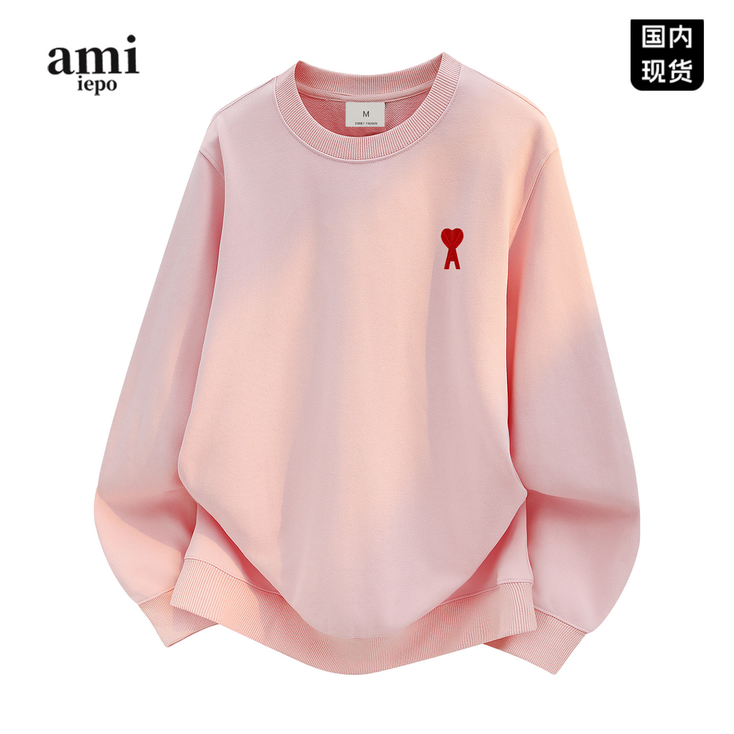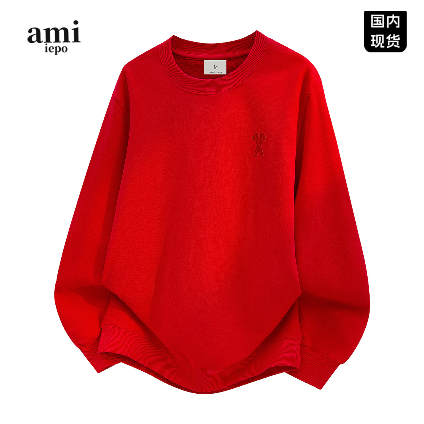 📚 Ami iepo官方红色圆领卫衣男女情侣款秋冬季美式宽松百搭套头上衣