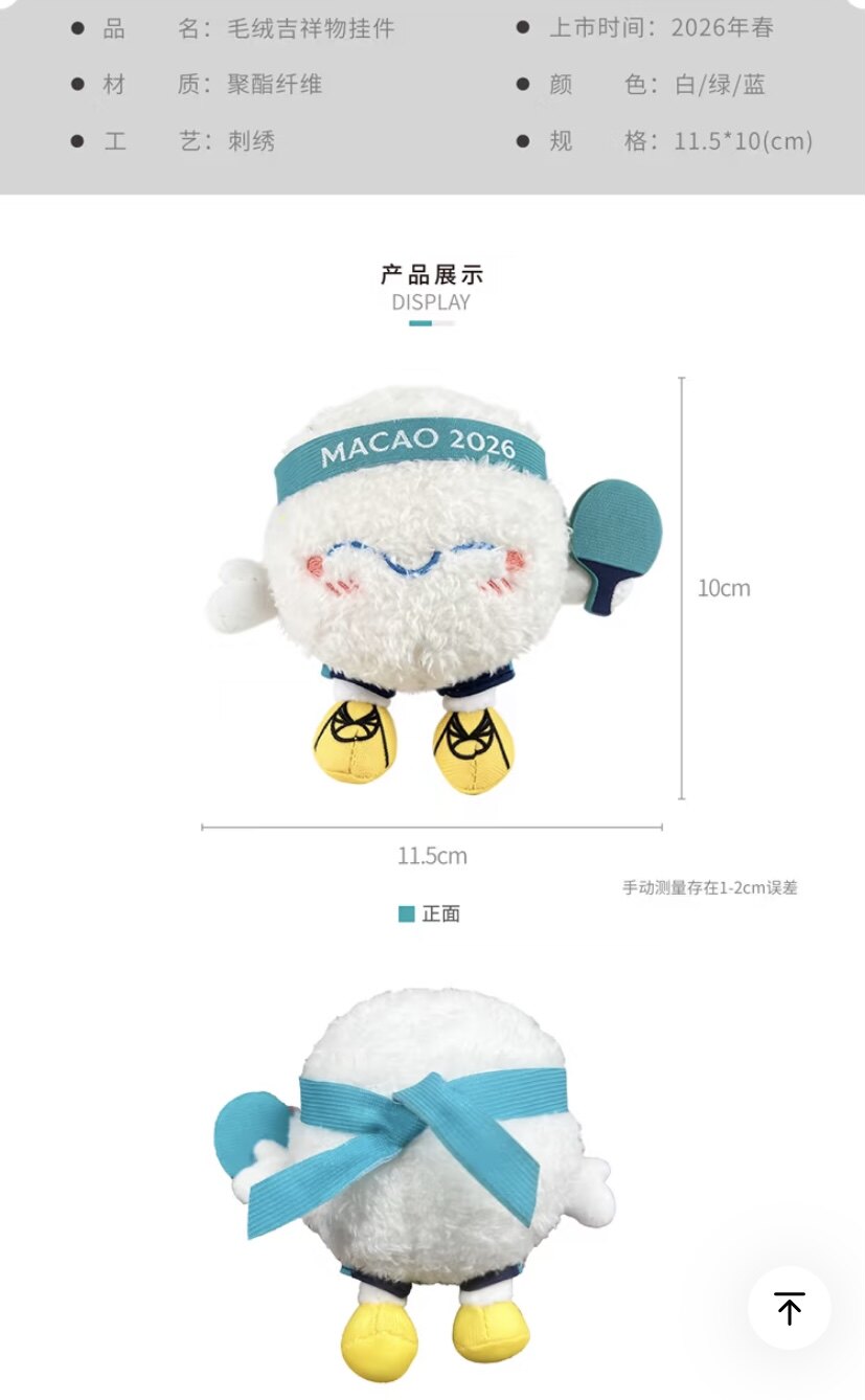 📚 2026国际乒联世界杯澳门玩具挂件毛绒吉祥物波仔应援礼物周边