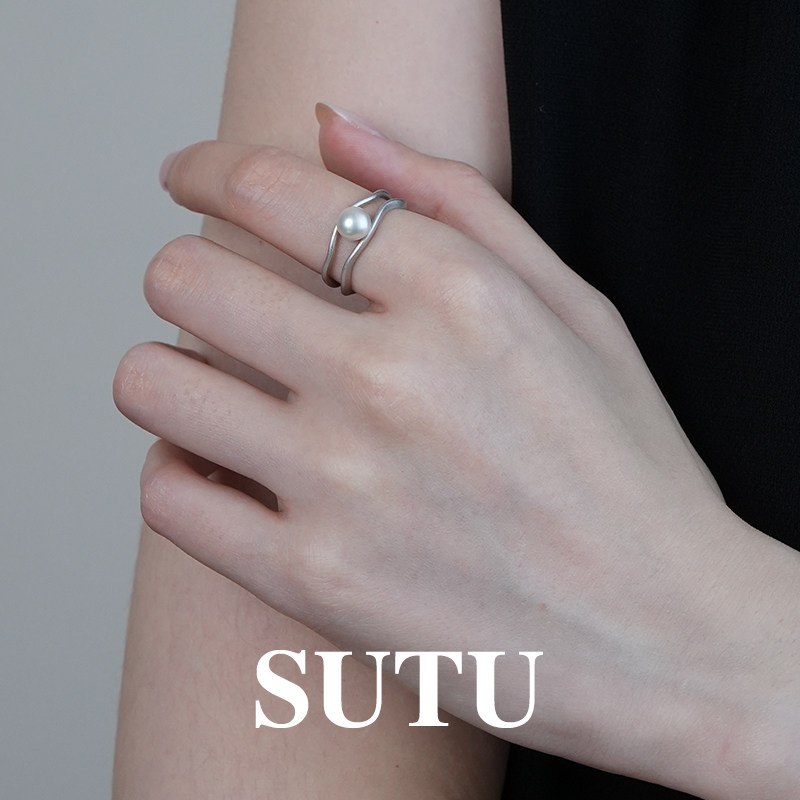 📚 素图缠绕珍珠戒指简约小众设计食指戒开口戒精致轻奢高级感指环女