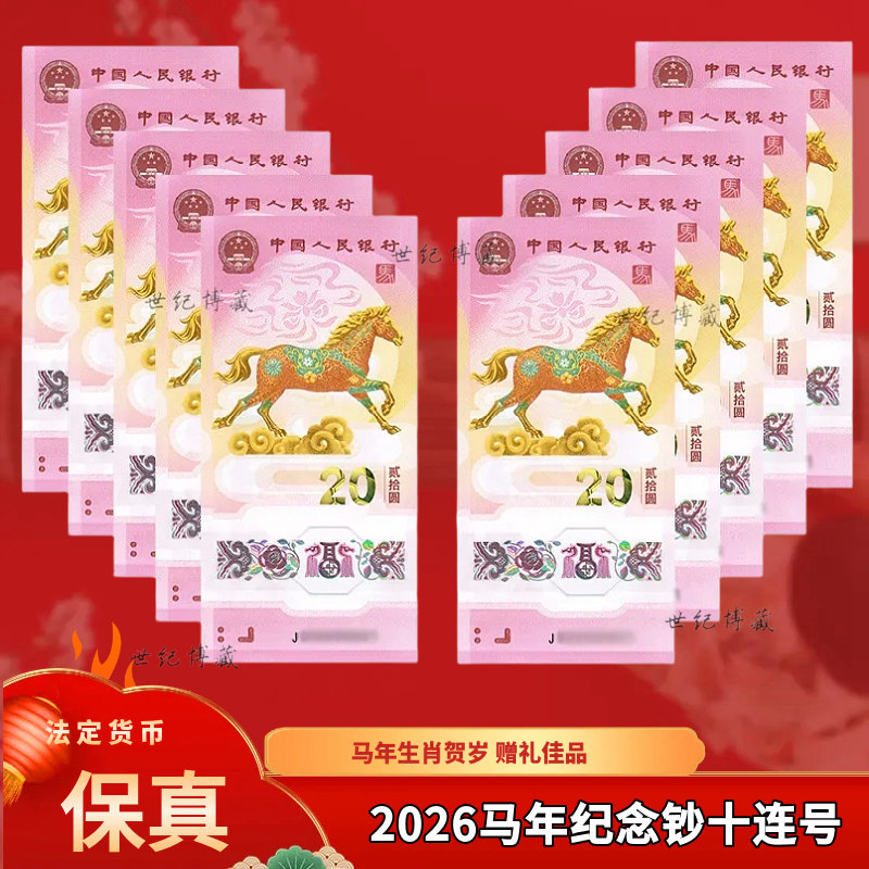 📚 2026年马年贺岁生肖纪念钞20元 马钞十连号10连号马年纪念币保真