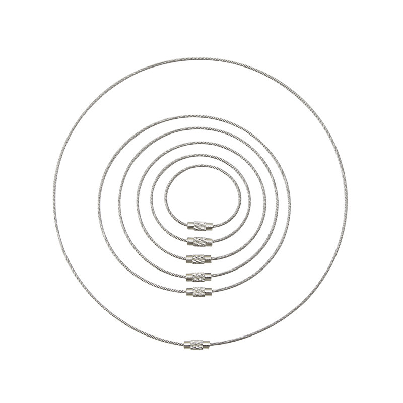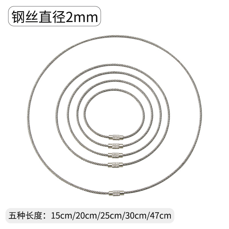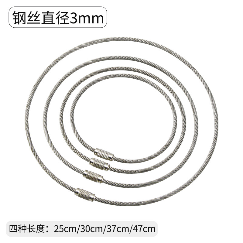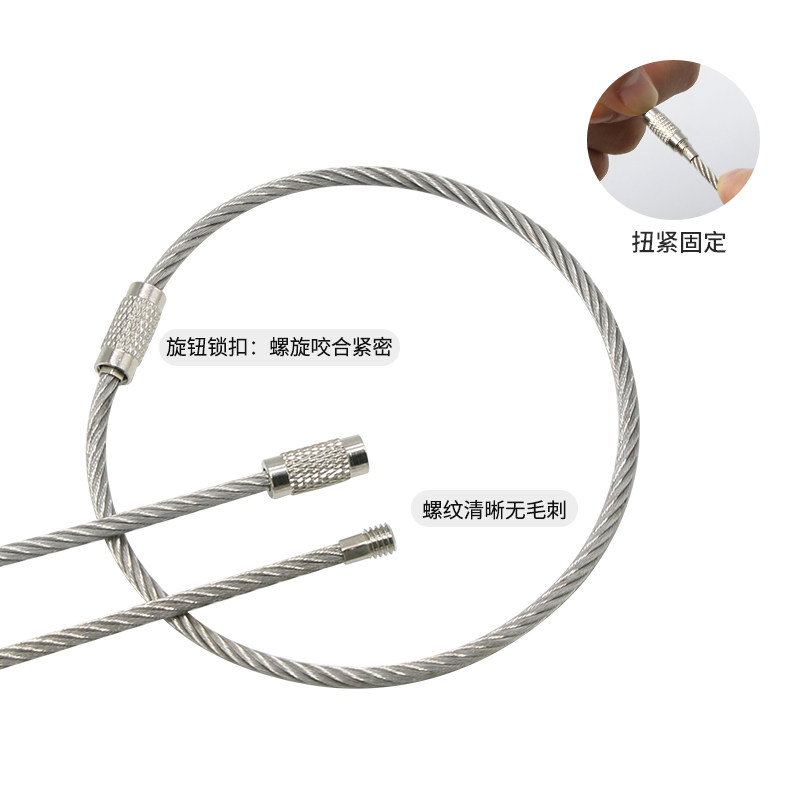 📚 不锈钢丝绳圈钥匙扣挂件钢丝圈吊牌线圈吊丝挂扣户外带锁扣钢丝环