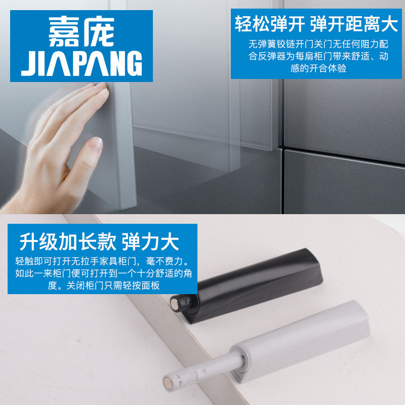 📚 嘉庞无弹簧铰链反弹门铰无力合页飞机衣柜门反弹器免拉手按弹开启