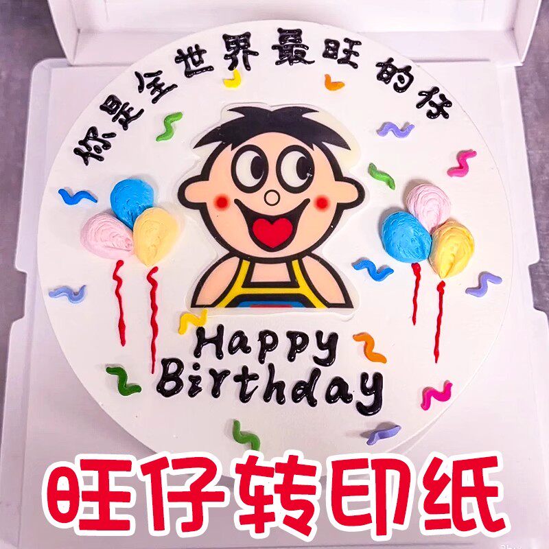 📚 旺仔巧克力转印纸蛋糕装饰儿童节卡通图案男孩生日糯米纸蛋糕装饰