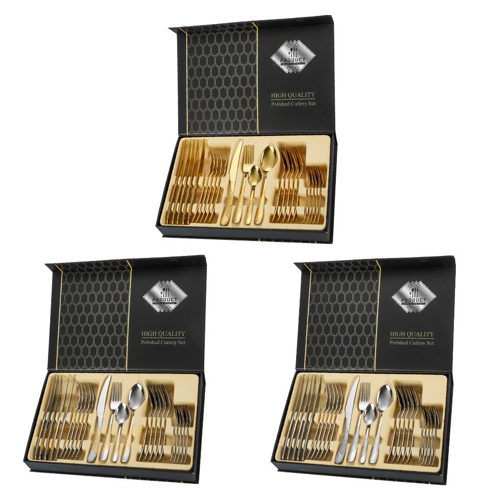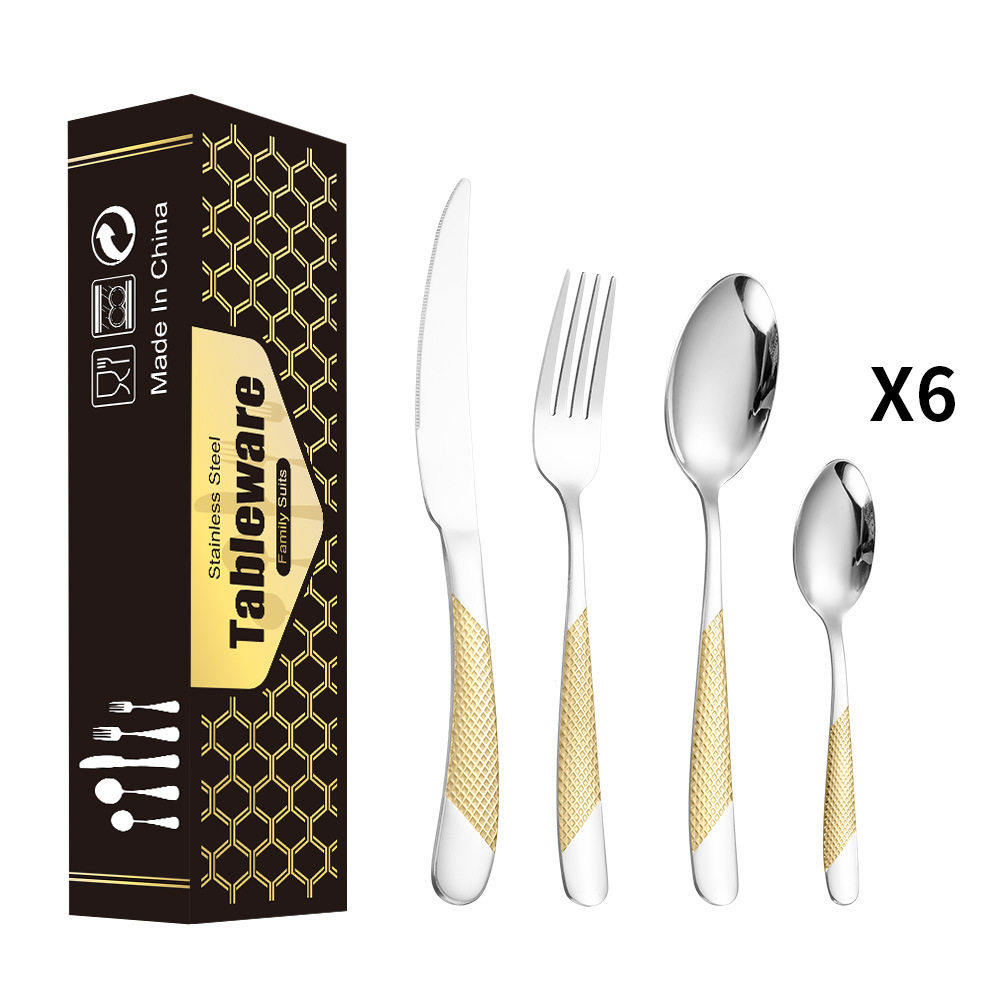 📚 高档欧式不锈钢餐具套装跨境俄罗斯西餐具刀叉勺星钻24件套礼盒套