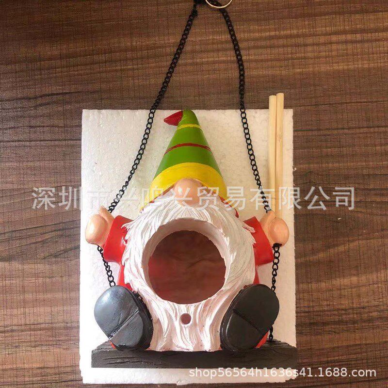 📚 荡秋千地精侏儒矮人蜂鸟窝户外花园庭院花坪树脂荡秋千蜂鸟窝挂件