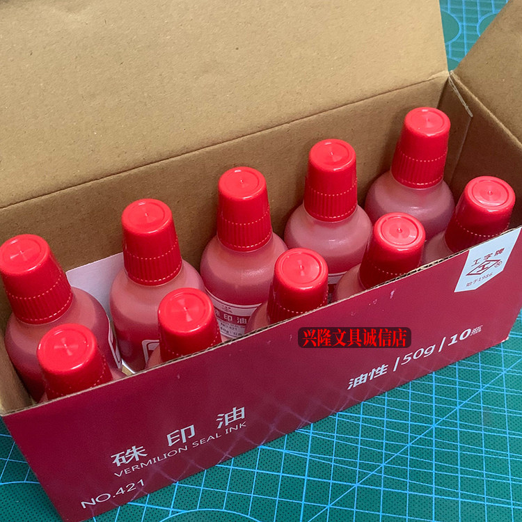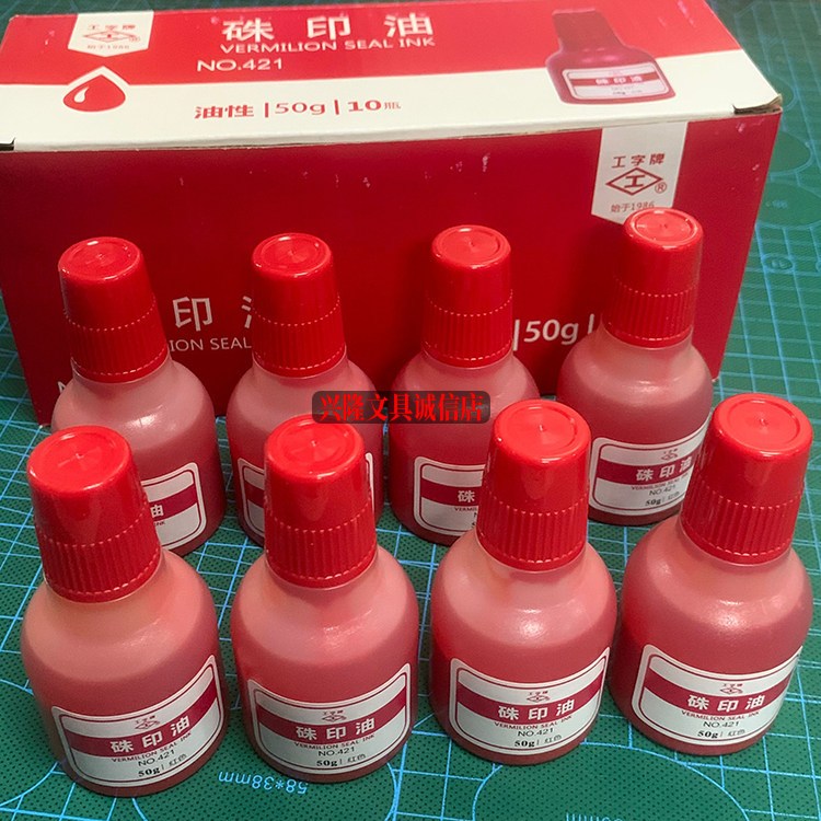📚 工字牌421红色朱印油发票盖章印泥专用印油朱奶油朱砂印油10瓶