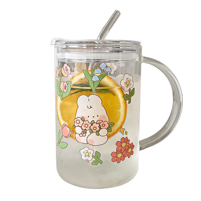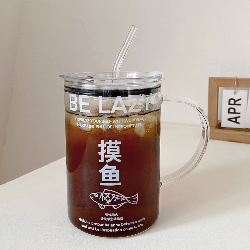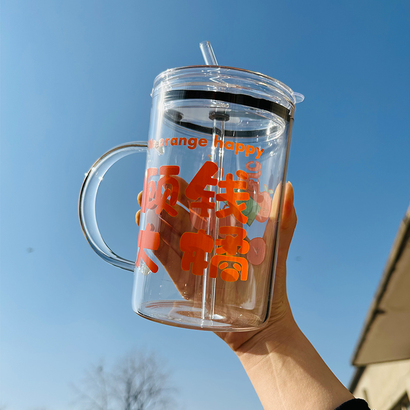 📚 1000ml玻璃杯带把手吸管杯办公室超大容量喝水杯耐高温宿舍牛奶杯