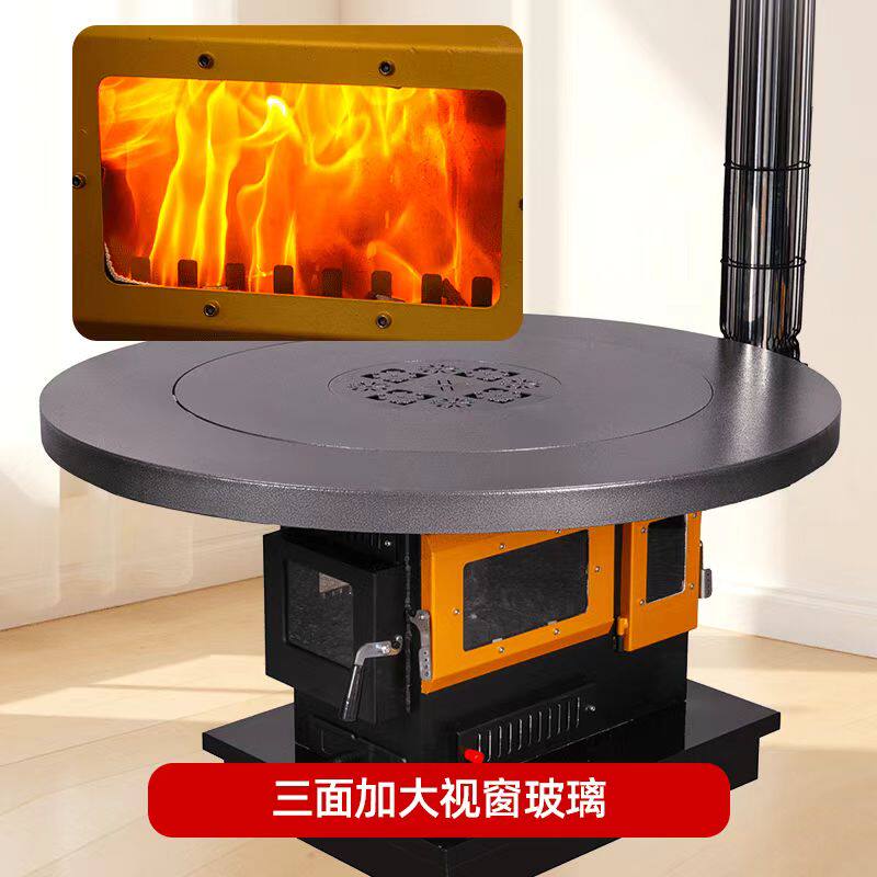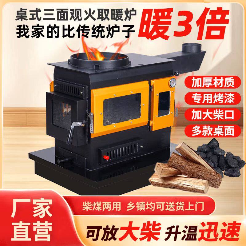 📚 2026新款冬季取暖柴火壁炉烧木柴煤炭家用无烟新型三面观火烤火炉