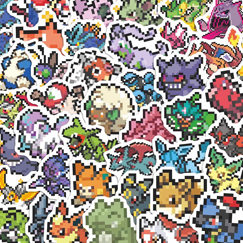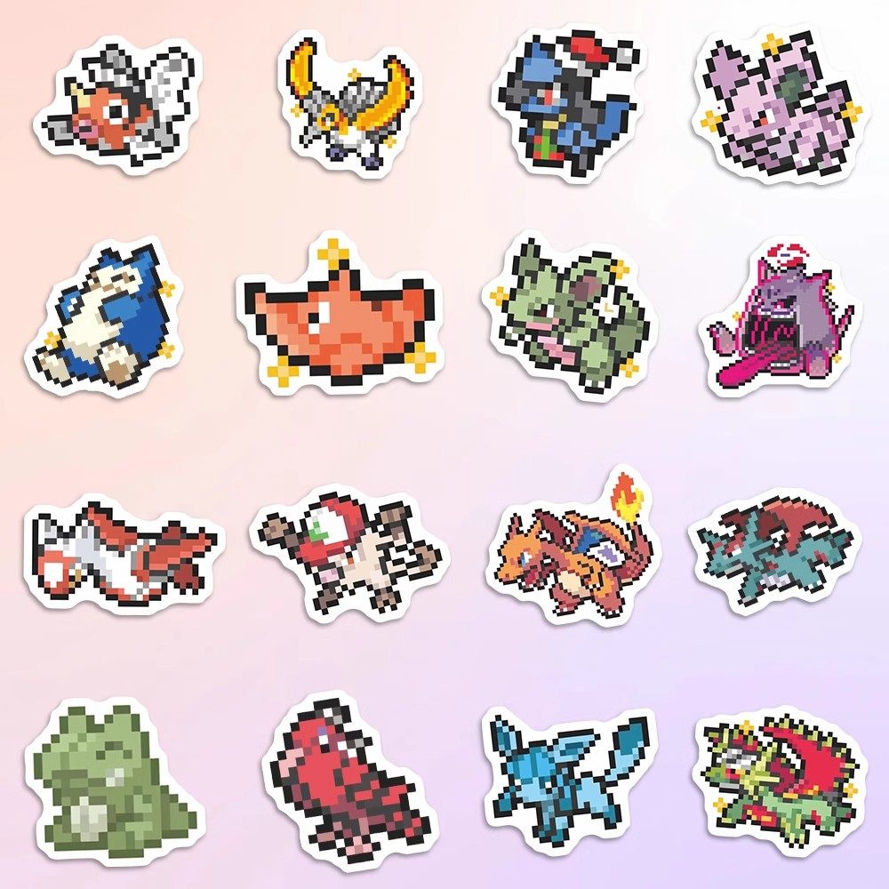 📚 60张宝可梦像素风贴纸爆款创意像素风创意装饰手账水杯笔记本贴画