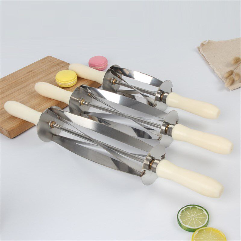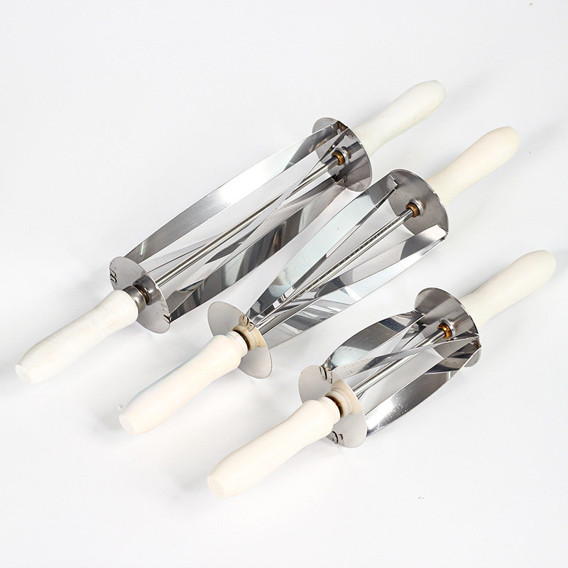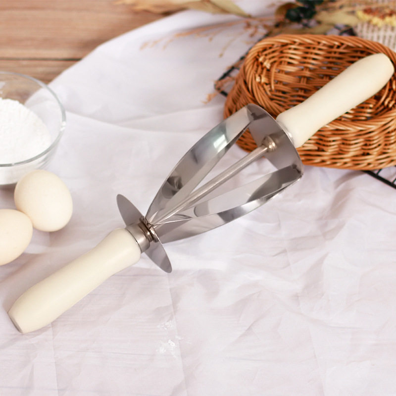 📚 大号牛角包滚轮刀手握式三角形不锈钢面团轮刀流沙可颂切面工具